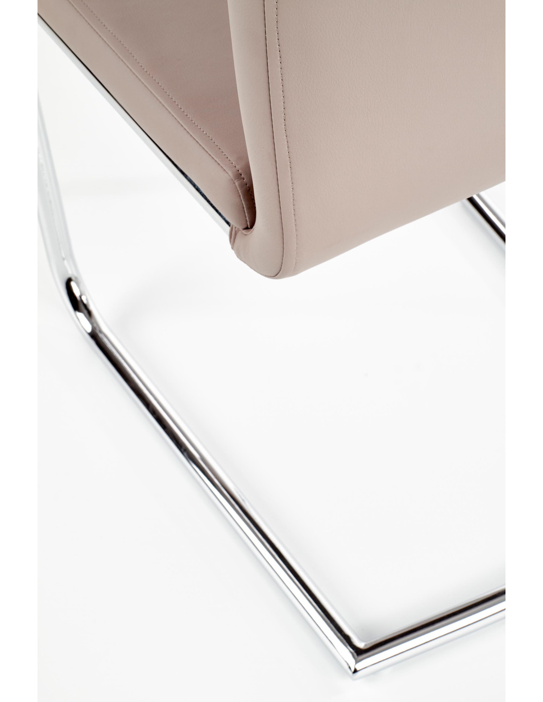 Krzesło wykonane jest z chromowanej stali oraz eco skóry w kolorze cappuccino, co zapewnia estetyczny wygląd.