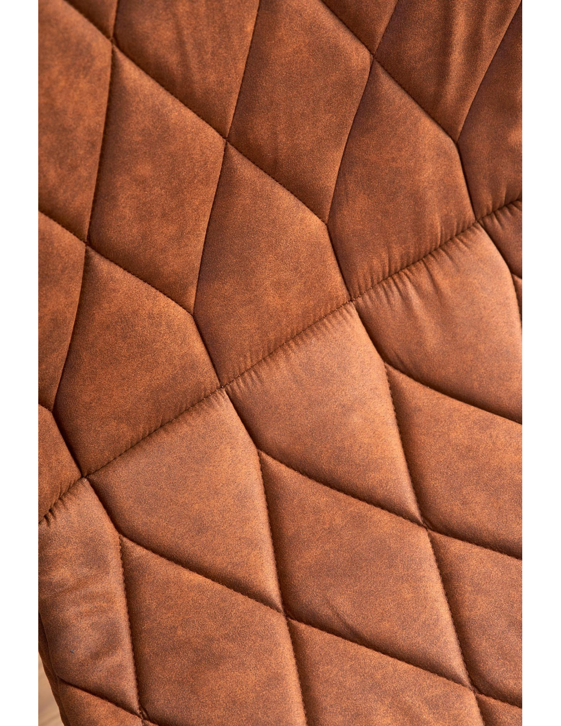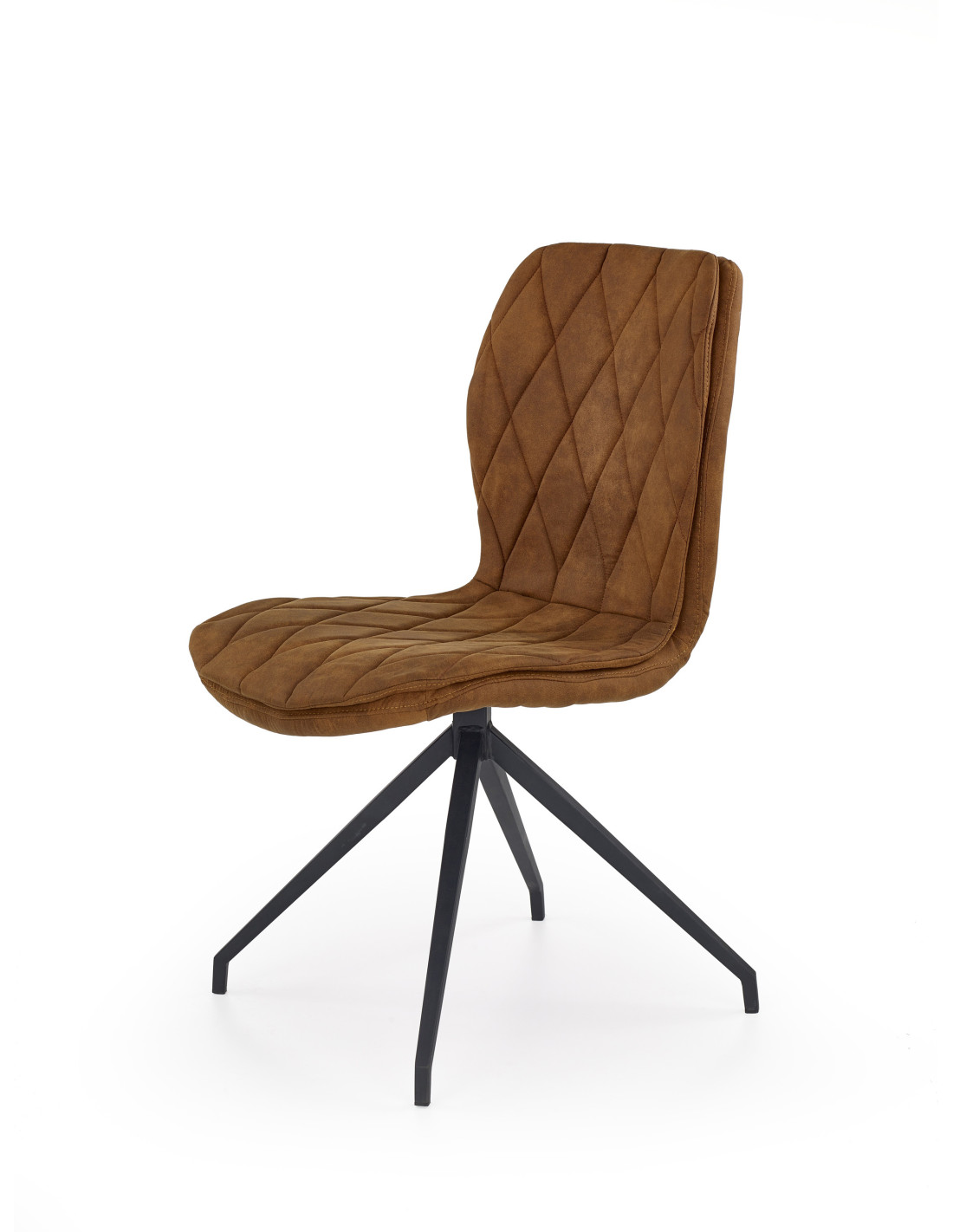Ulepsz swoje wnętrze dzięki krzesłu K237, które doskonale łączy nowoczesny styl z komforcie użytkowania. To brązowe krzesło wykonane z eco-skóry wyróżnia się charakterystycznymi geometrycznymi przeszyciami na siedzisku i oparciu, które dodają mu elegancji. Miękkie siedzisko oraz oparcie zapewniają wygodę, a solidna metalowa konstrukcja w czarnym kolorze sprawia, że krzesło jest nie tylko estetyczne, ale i funkcjonalne.