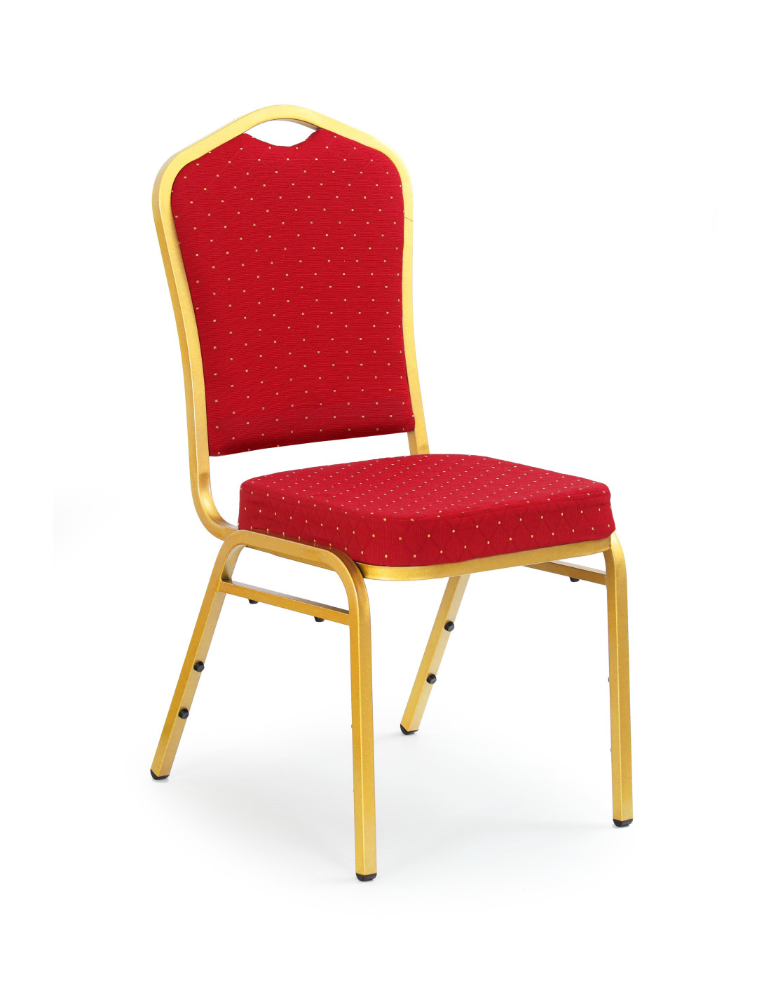 Złoty, metalowy stelaż doskonale komponuje się z bordową tapicerką, co sprawia, że krzesło K66 będzie wspaniałym akcentem w salach przyjęć, restauracjach czy konferencyjnych. Dzięki możliwości sztaplowania, przechowywanie krzeseł jest niezwykle proste i wygodne. To nie tylko mebel – to prawdziwa ozdoba Twojego wnętrza.