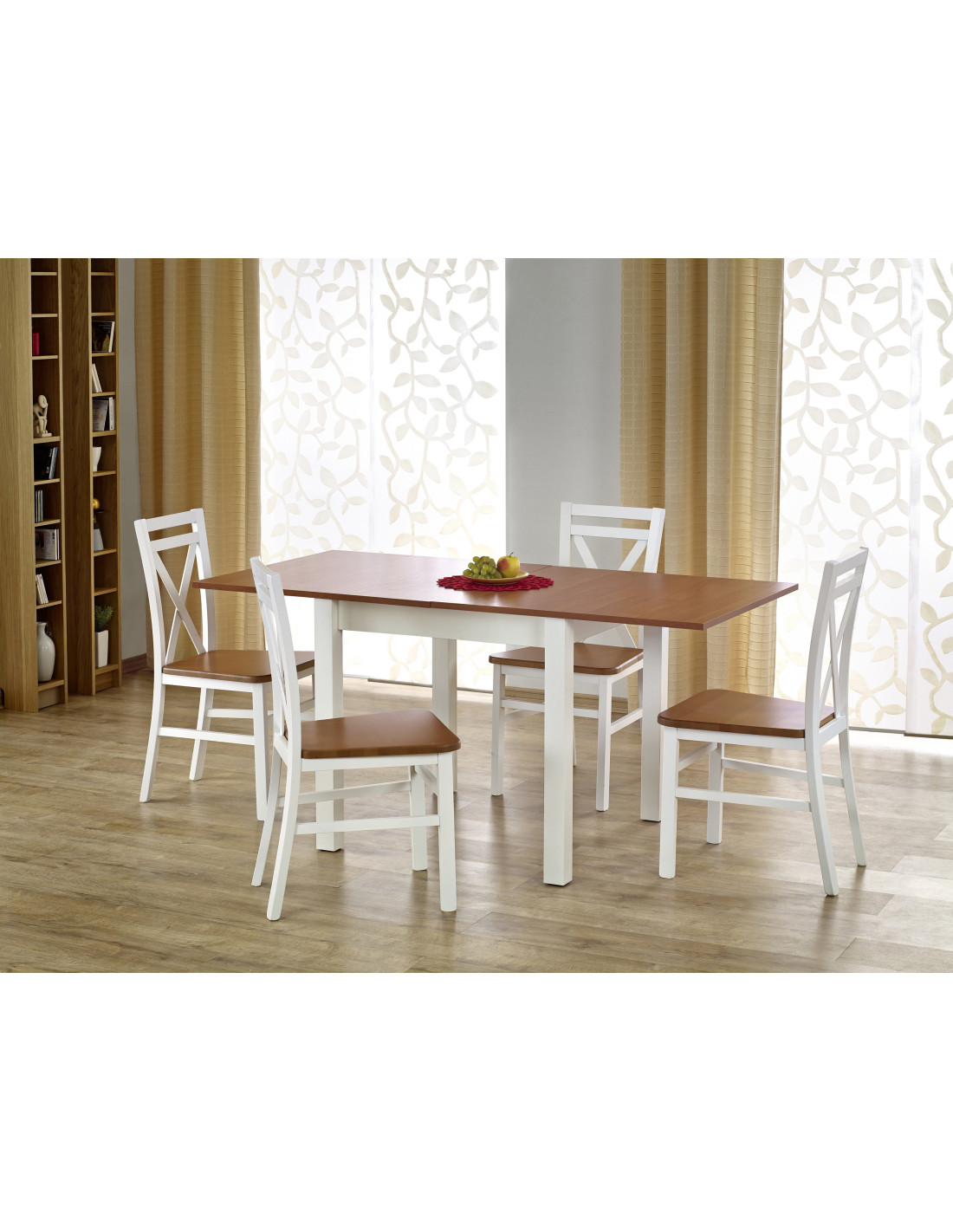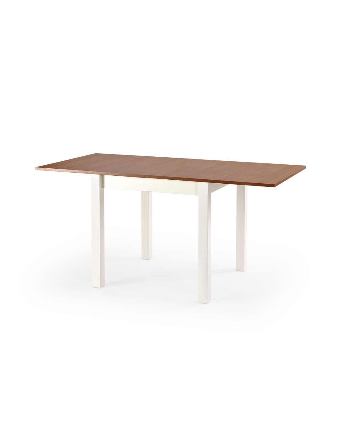 Ten funkcjonalny stół jest idealny do mniejszych pomieszczeń. Dużym atutem tego stołu jest możliwość rozłożenia blatu kiedy następuje potrzeba zapewnienia dodatkowych miejsc przy stole. Jest to świetne rozwiązanie podczas wizyt większej ilości gości w pomieszczeniu gdzie na co dzień nie potrzebujemy dużego stołu.