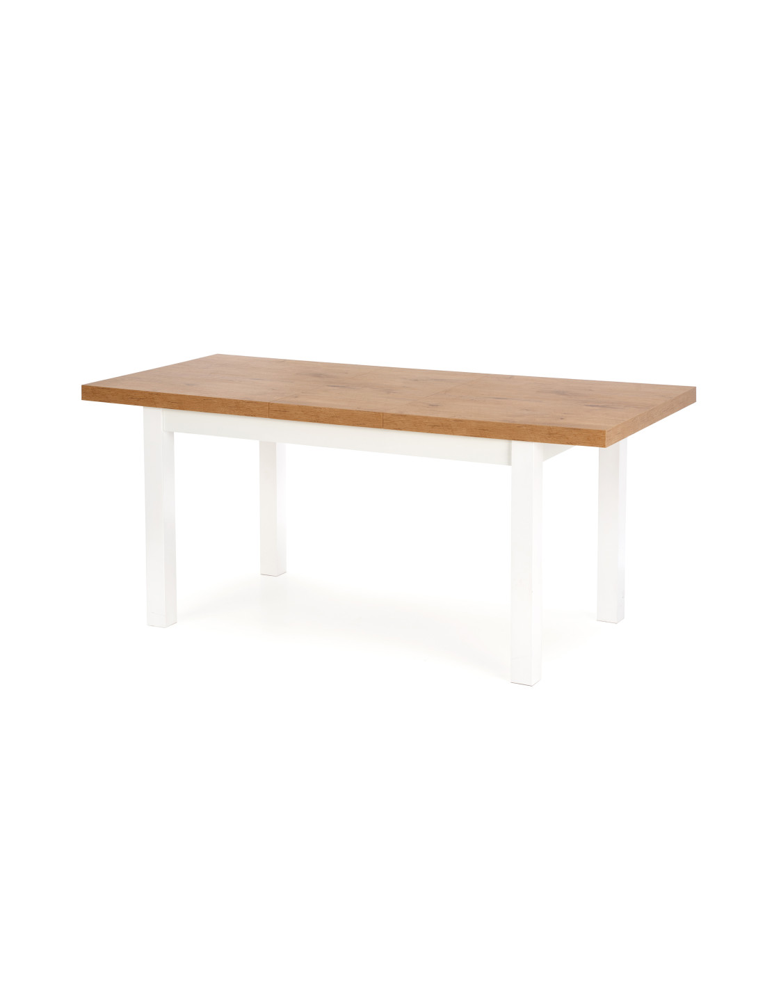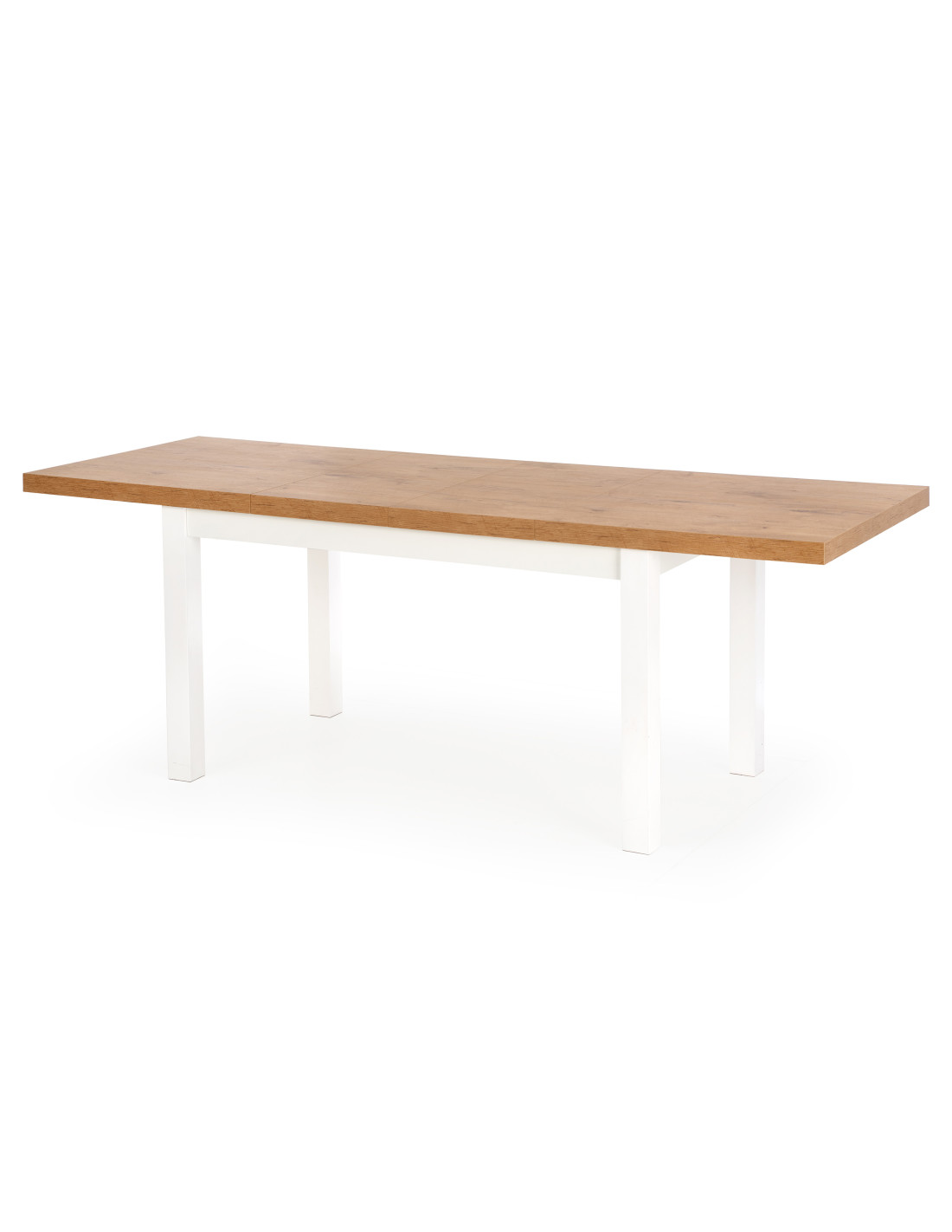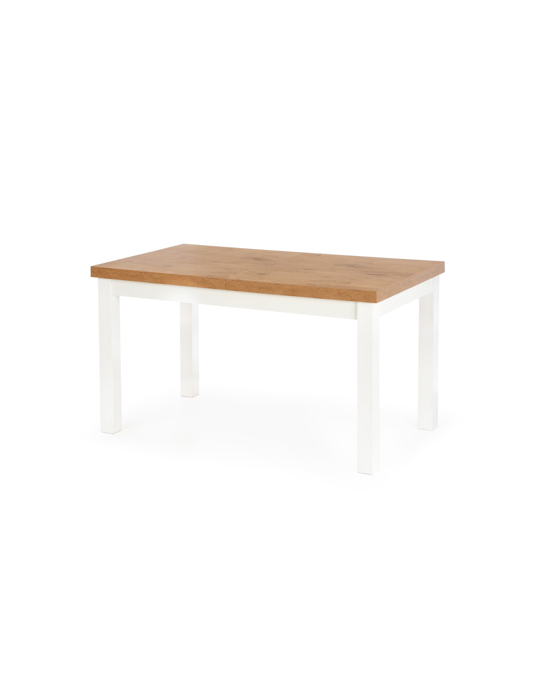 Wybierz rozszerzany stół TIAGO, który łączy w sobie nowoczesny design z niepowtarzalnym urokiem naturalnego drewna! Blat w kolorze dębu lancelot o gładkiej, prostokątnej powierzchni, wykonany z płyty meblowej laminowanej, to kwintesencja elegancji. Dodatkowo, białe, proste nogi ze litego drewna bukowego nadają mu lekkości i charakteru, idealnie komponując się z różnorodnymi aranżacjami wnętrz.