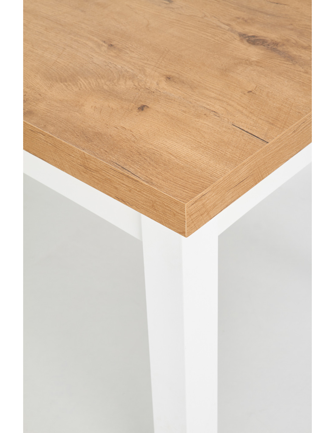 Obecnie stół TIAGO dostępny jest w kolorze dąb lancelot i białym, które harmonijnie współgrają ze sobą.