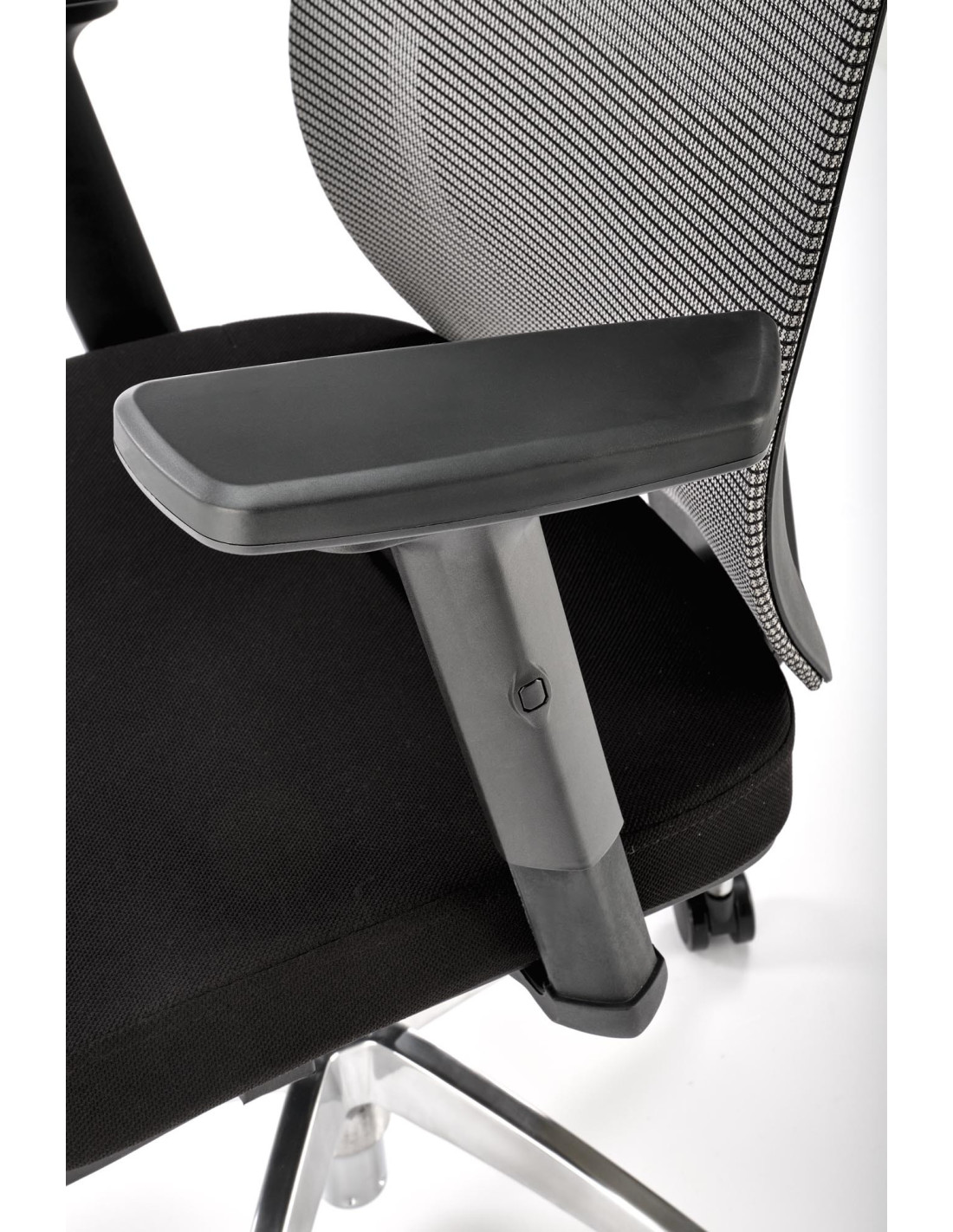 Fotel ADMIRAL wykonany jest z tkaniny oraz siatki, a jego podstawa to stal chromowana, co zapewnia trwałość i estetyczny wygląd.