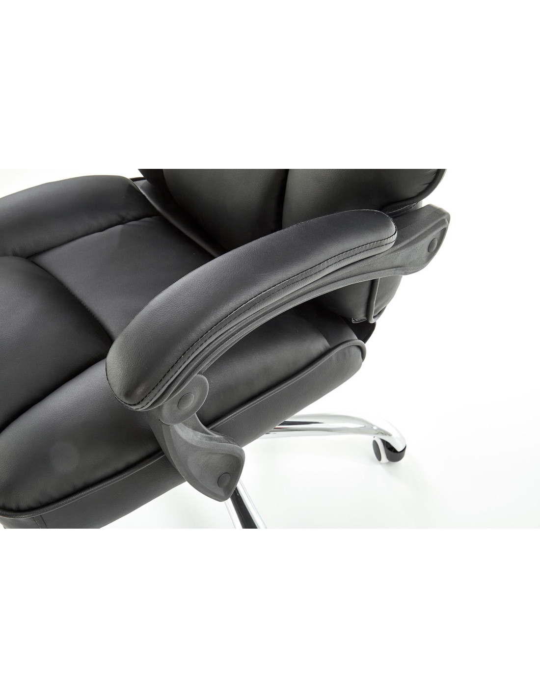 Fotel ALVIN wykonany jest z wysokiej jakości czarnej eco skóry, co zapewnia elegancki wygląd i łatwe czyszczenie.
