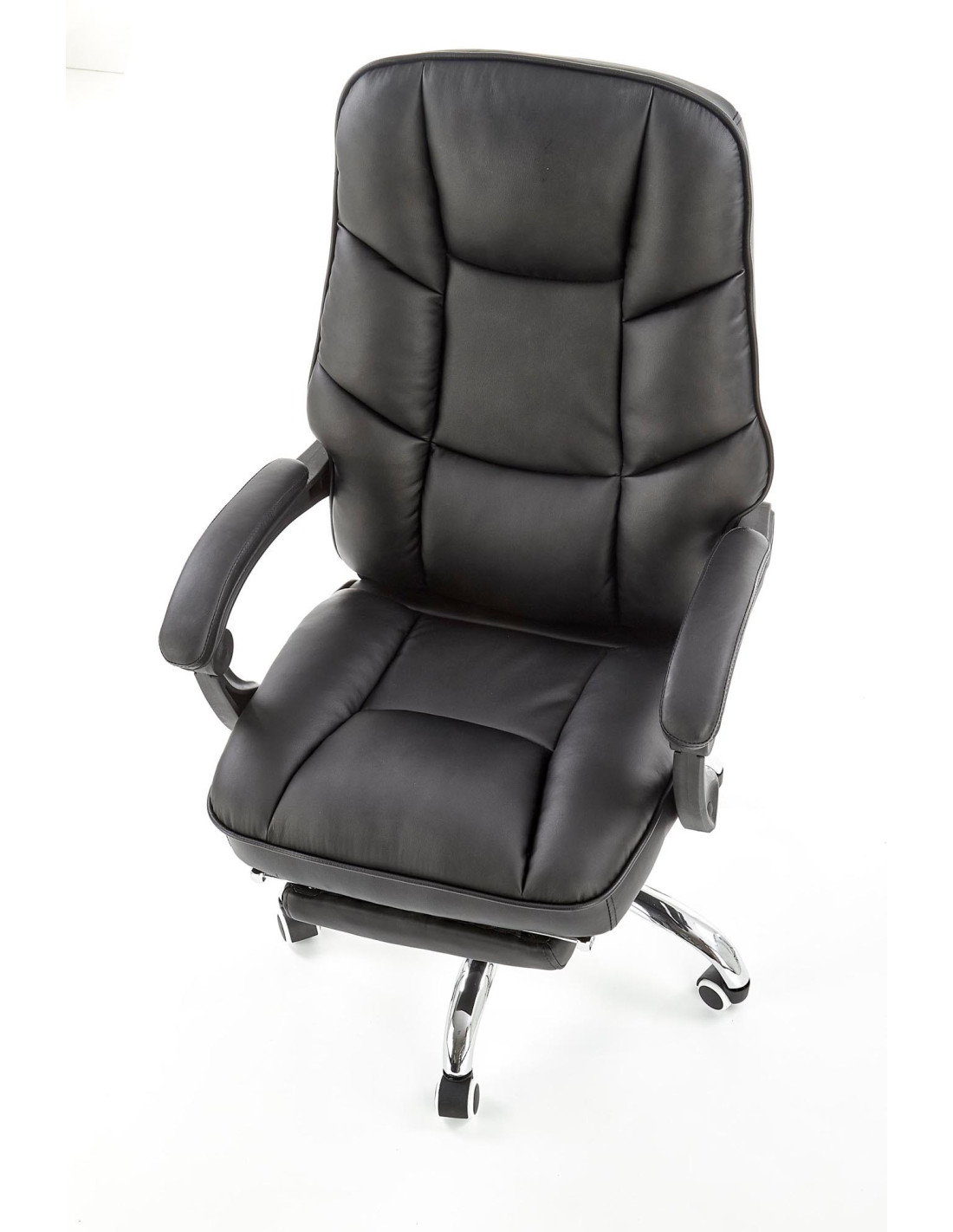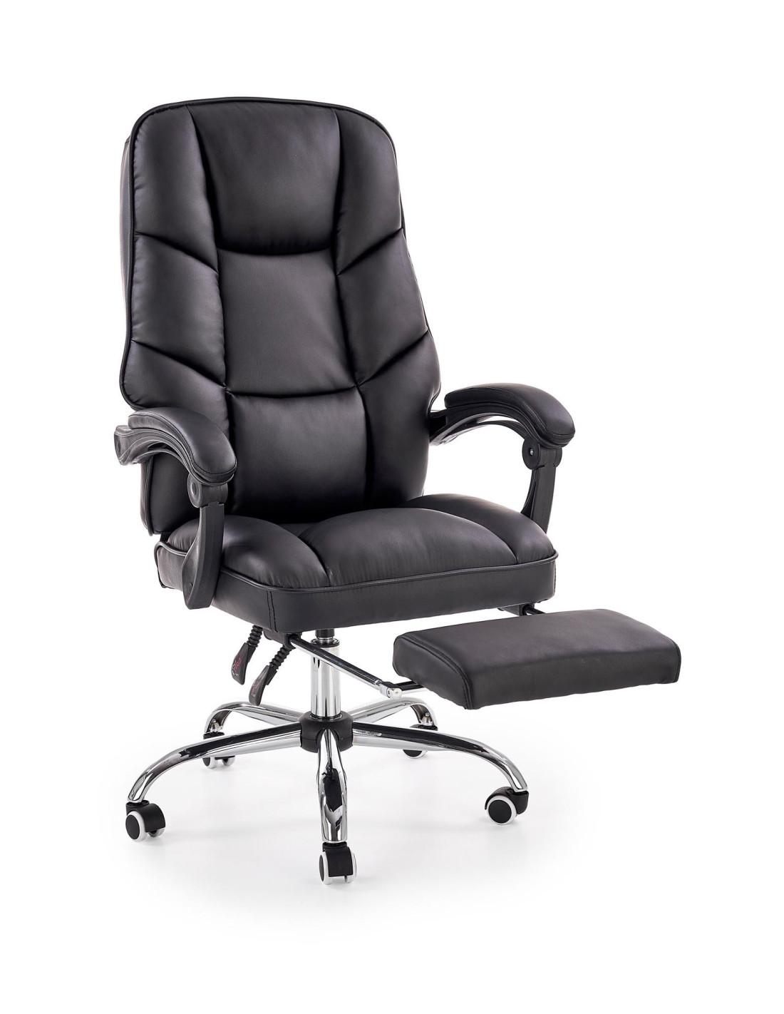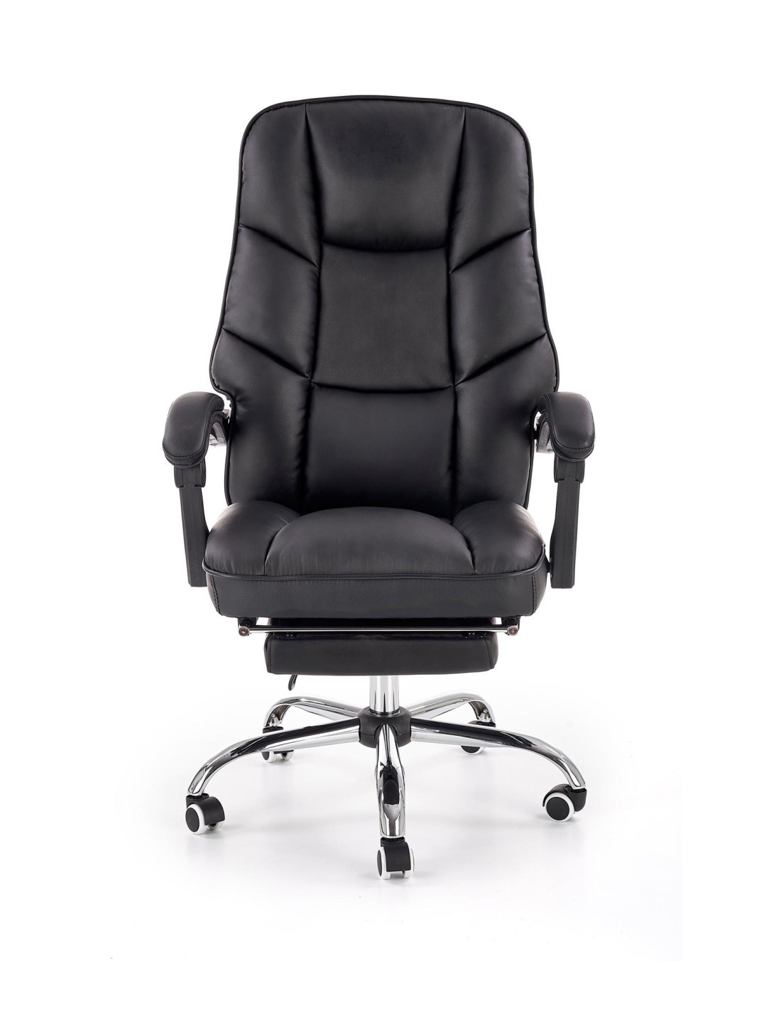 ALVIN Fotel Gabinetowy z Podnóżkiem - Czarna Eco Skóra - Elegancja i Komfort