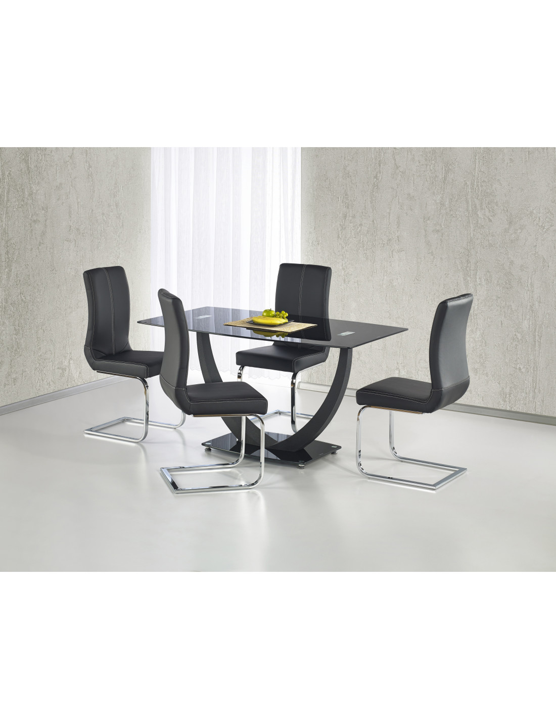 Poznaj stół szklany ANTON, który łączy w sobie nowoczesny design z eleganckim wykończeniem. Jego prostokątny kształt blatu o wymiarach 140 x 80 cm oraz czarny kolor sprawiają, że stół doskonale wpisuje się w trendy współczesnego wnętrzarstwa. Szklany blat, oparty na solidnej metalowej podstawie, tworzy harmonijną całość, która z pewnością przyciągnie wzrok w każdym pomieszczeniu.