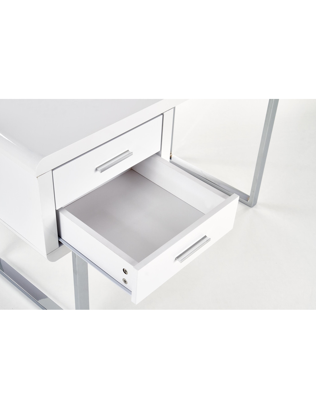 Biurko B30 wykonane jest z MDF lakierowanego na wysoki połysk oraz stali chromowanej.