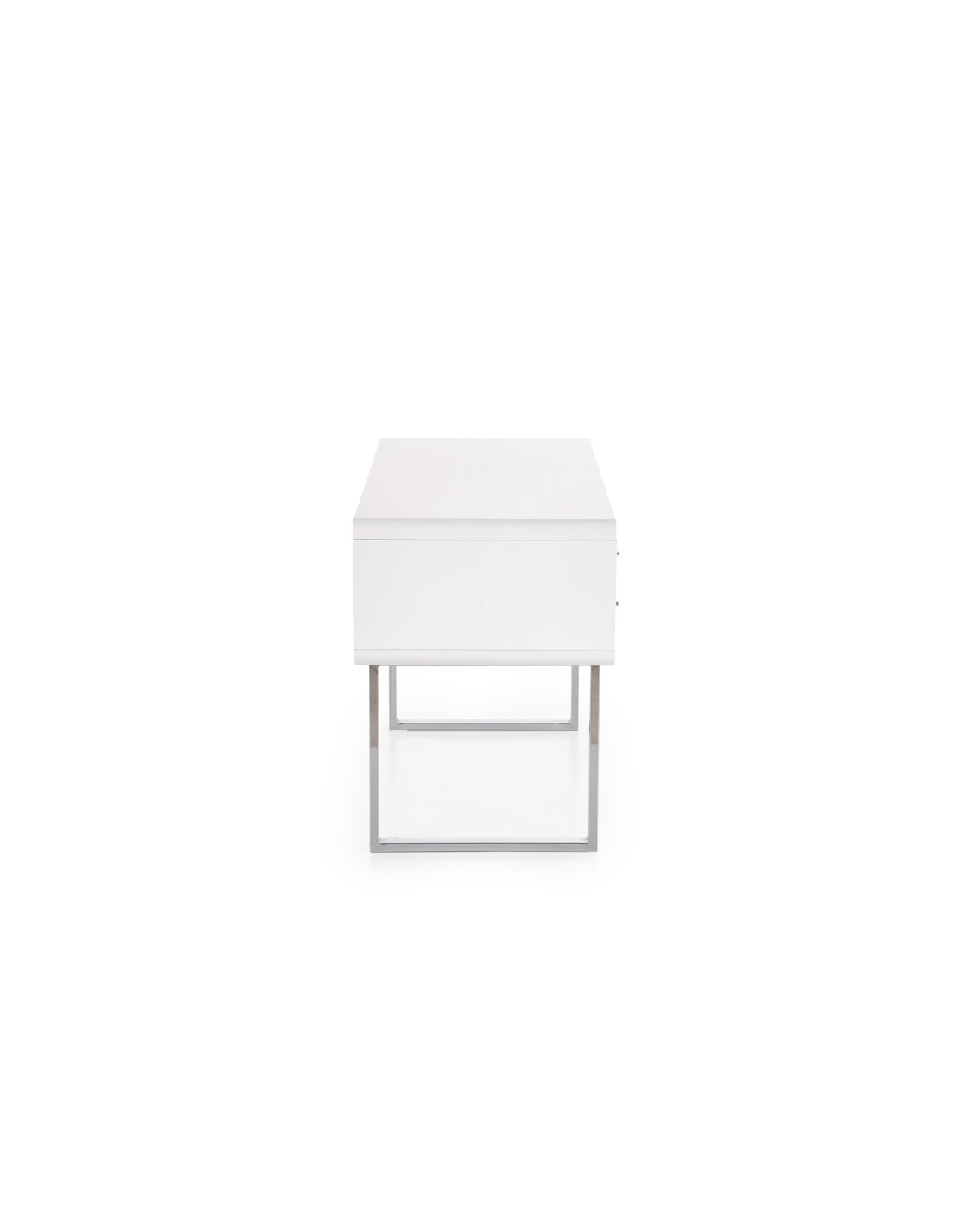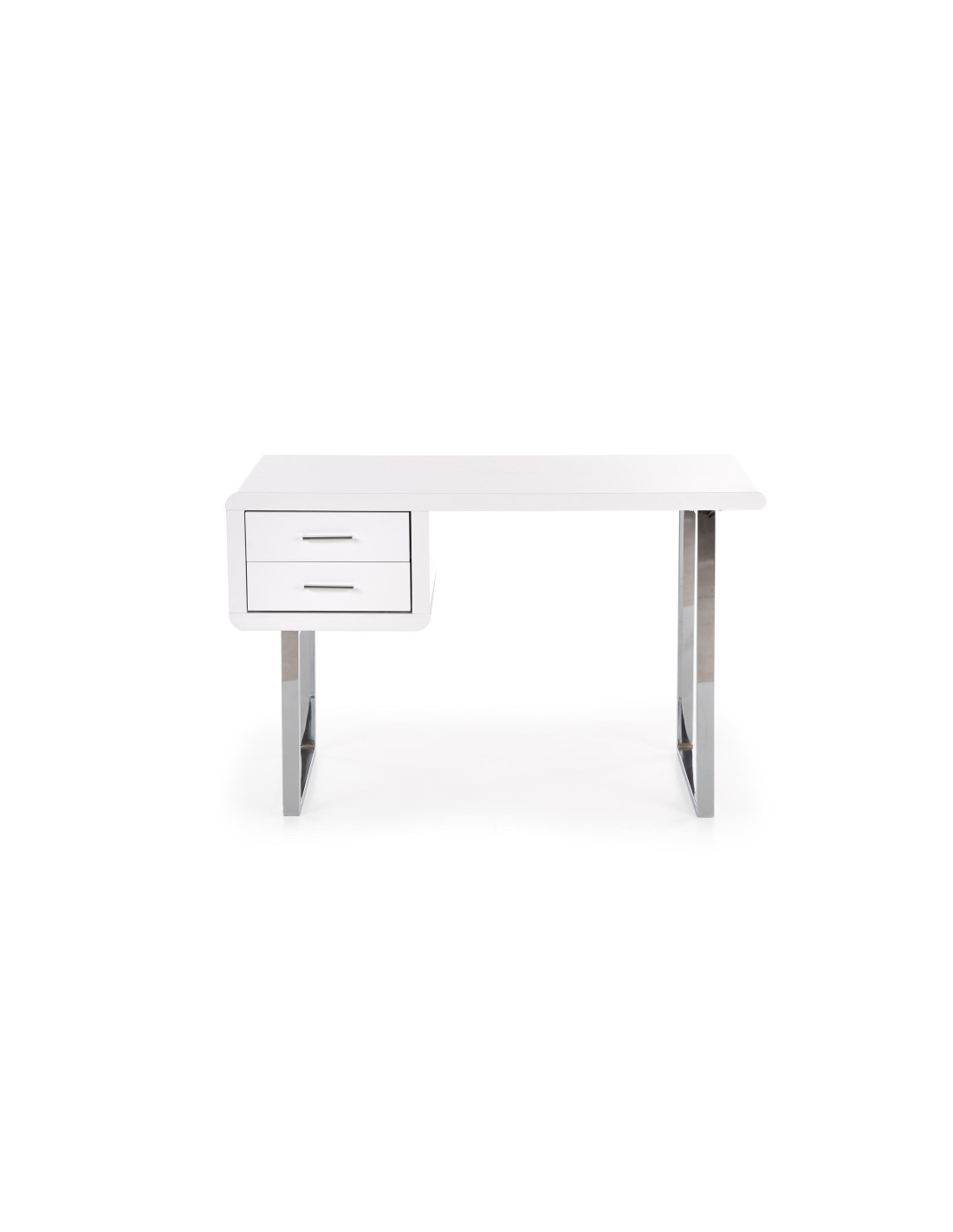 Dodaj piękny akcent do swojego wnętrza! Biurko B30 to połączenie nowoczesnego designu z minimalistycznym stylem. Jego prostokątny blat, wykonany z białego MDF lakierowanego na wysoki połysk, o zaokrąglonych krawędziach, nadaje mu elegancki charakter. Chromowane nogi biurka w kształcie prostokątnych ram zapewniają nie tylko stabilność, ale i nowoczesny wygląd.