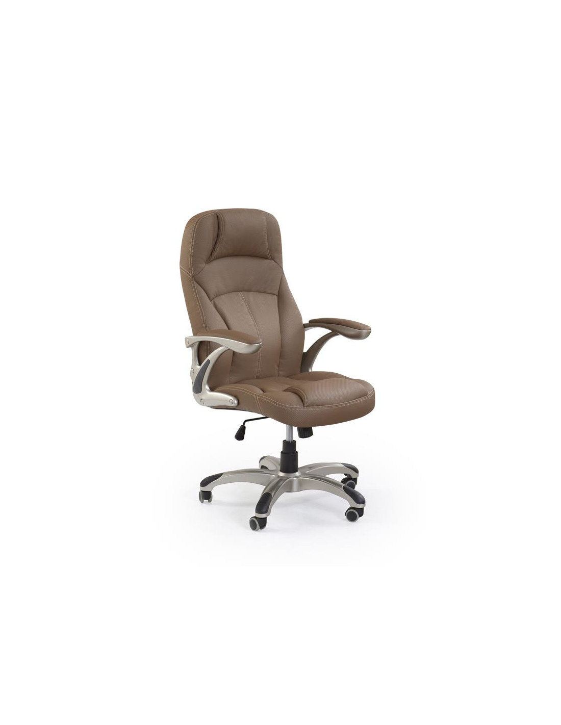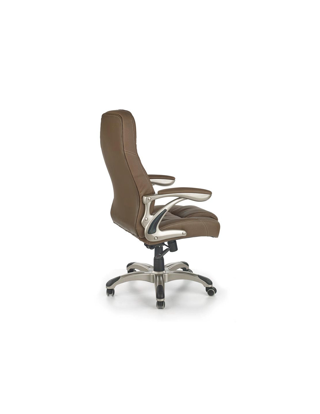 Fotel CARLOS wykonany jest z perforowanej eco-skóry oraz ma stalową podstawę z kółkami.