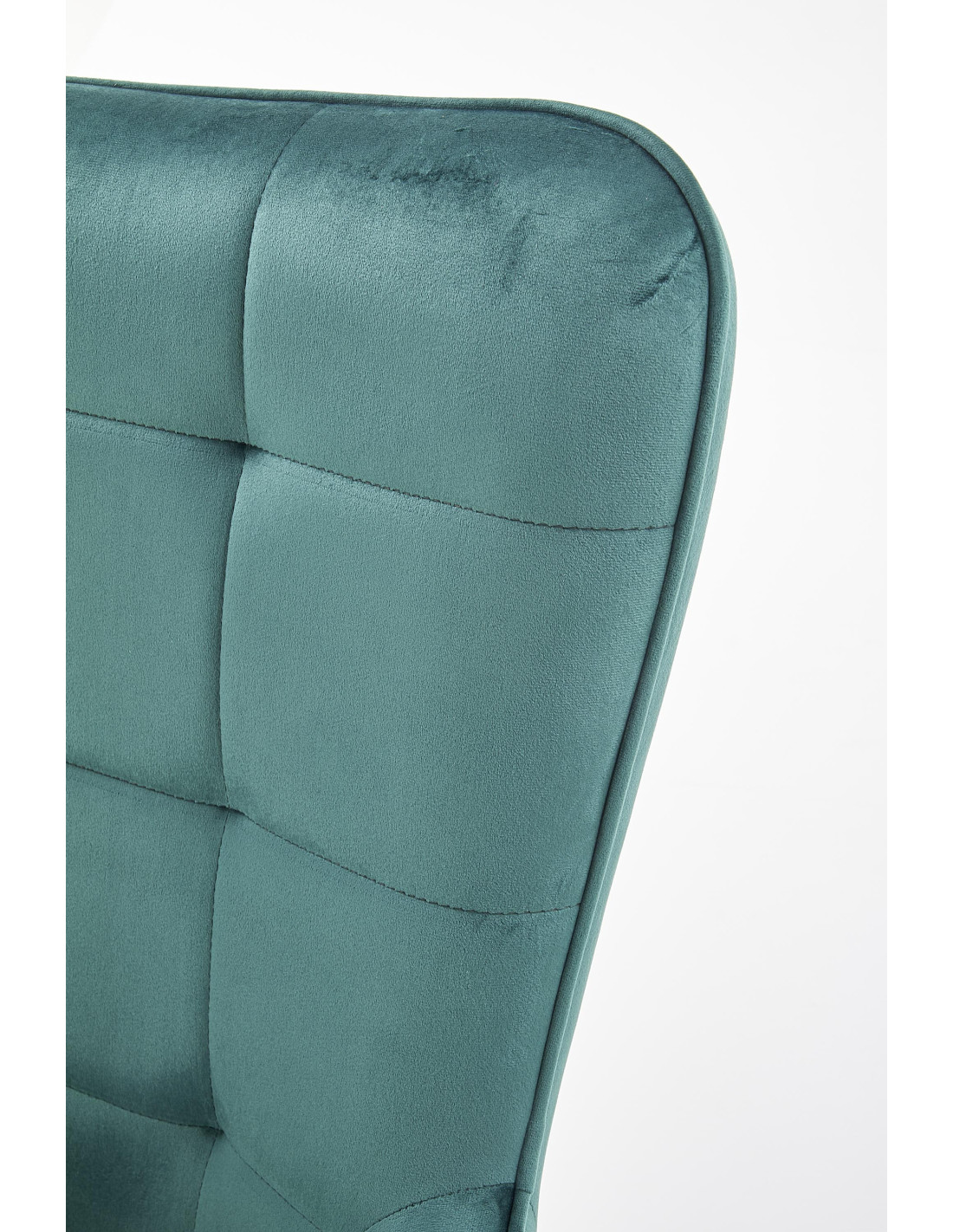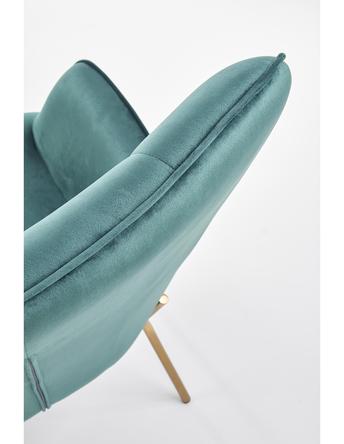 Fotel wykonany jest z miękkiego aksamitu w ciemnozielonym odcieniu BLUVEL78, co nadaje mu wyjątkowego charakteru. Idealnie sprawdzi się w nowoczesnych wnętrzach, wprowadzając do nich nutę elegancji i luksusu.