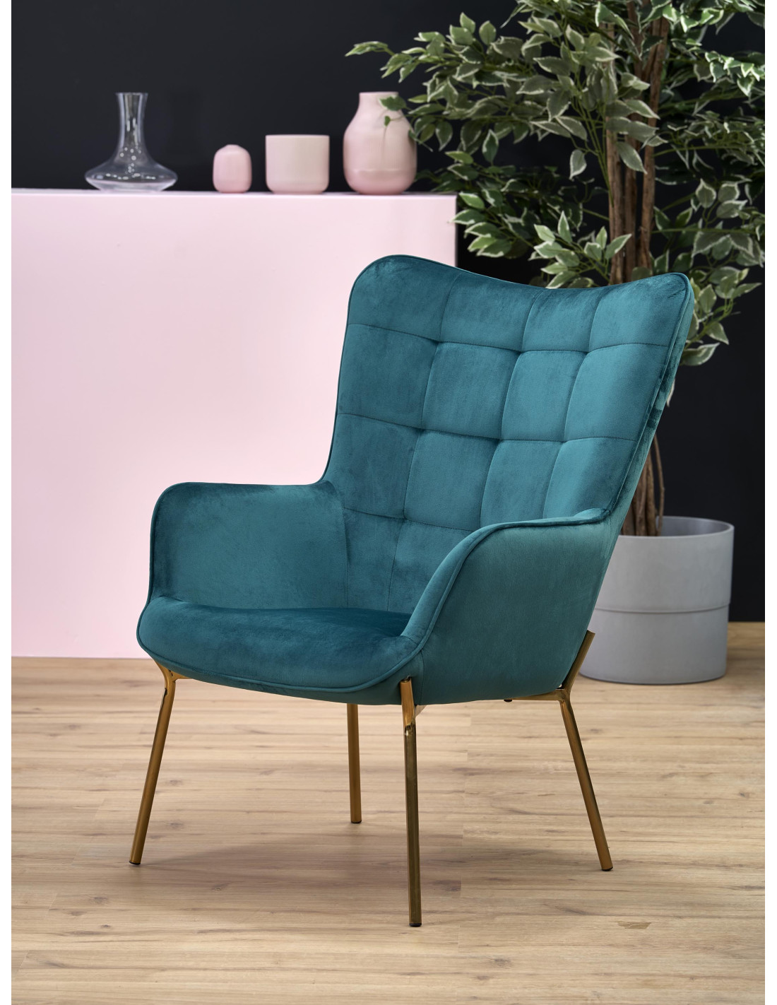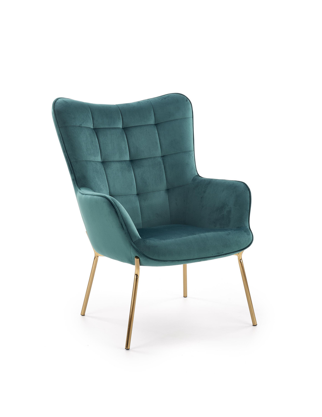 Zainwestuj w stylowe rozwiązanie – fotel wypoczynkowy CASTEL to połączenie nowoczesnego glamour z luksusowym komfortem. Pikowane oparcie oraz szerokie podłokietniki tworzą wyjątkową przestrzeń do relaksu. Smukłe, złote nogi dodają elegancji, a wysokie, zaokrąglone oparcie zapewnia doskonałe wsparcie.