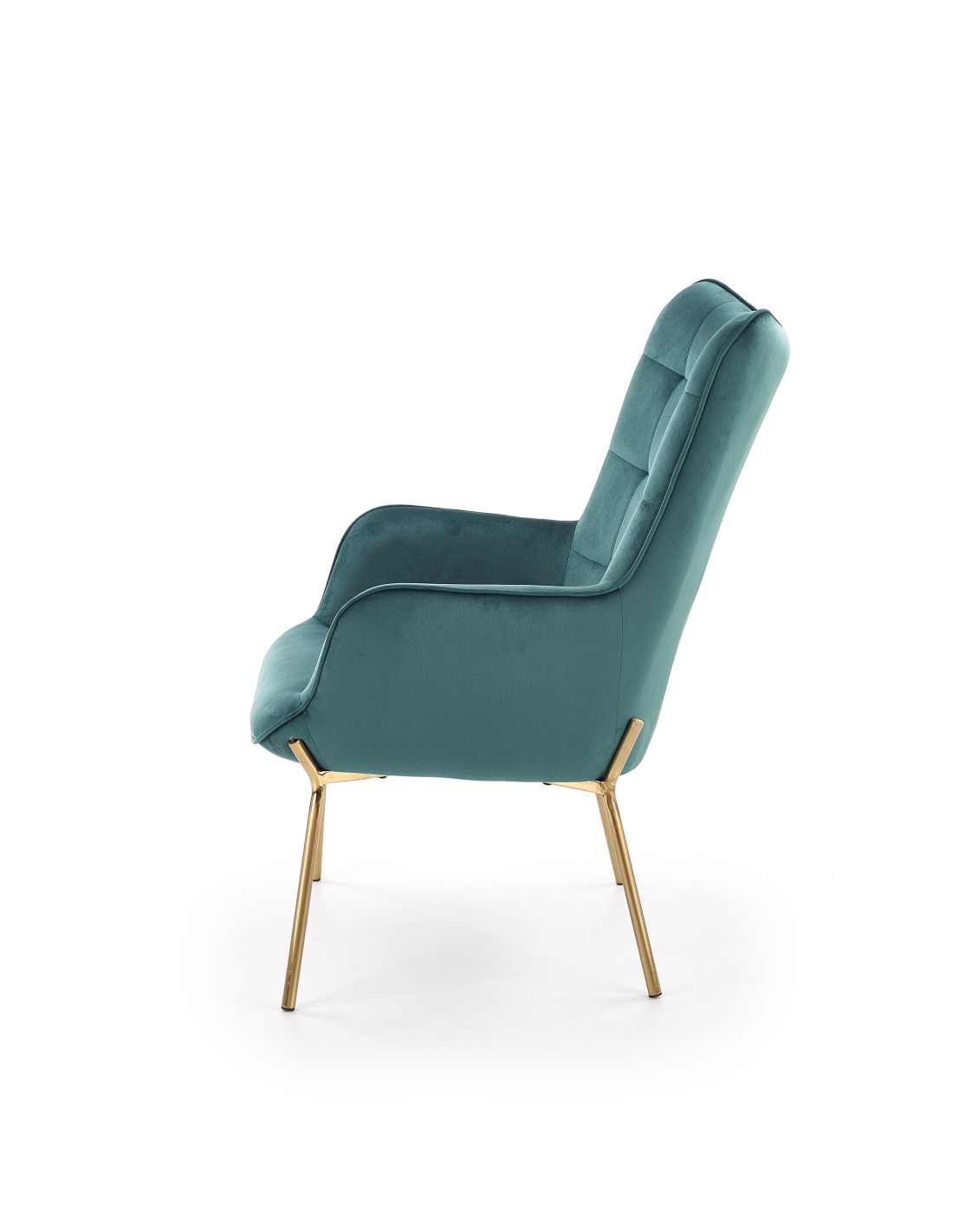 CASTEL Fotel Wypoczynkowy Pikowany Ciemnozielony | Velvet ze Złotymi Nogami