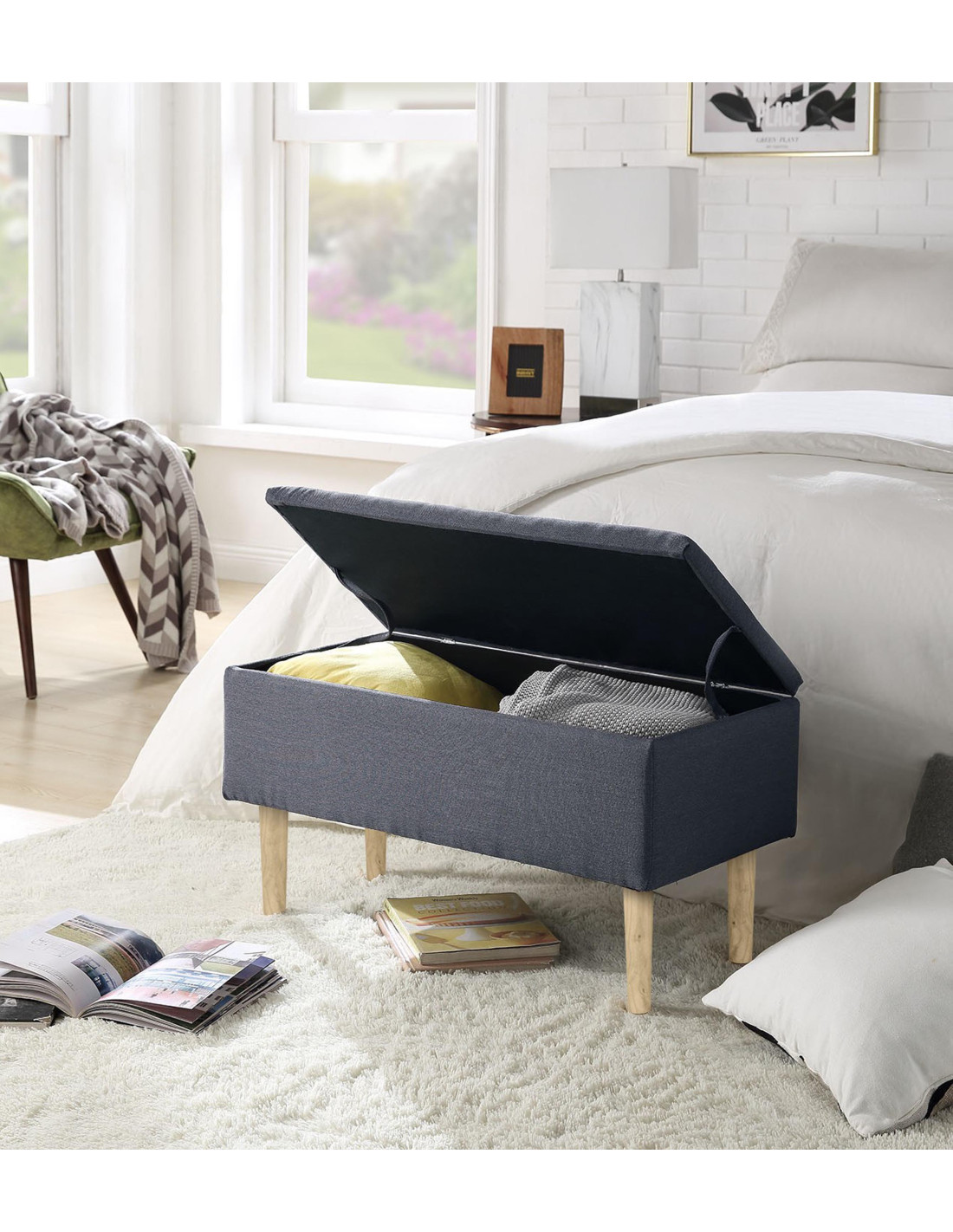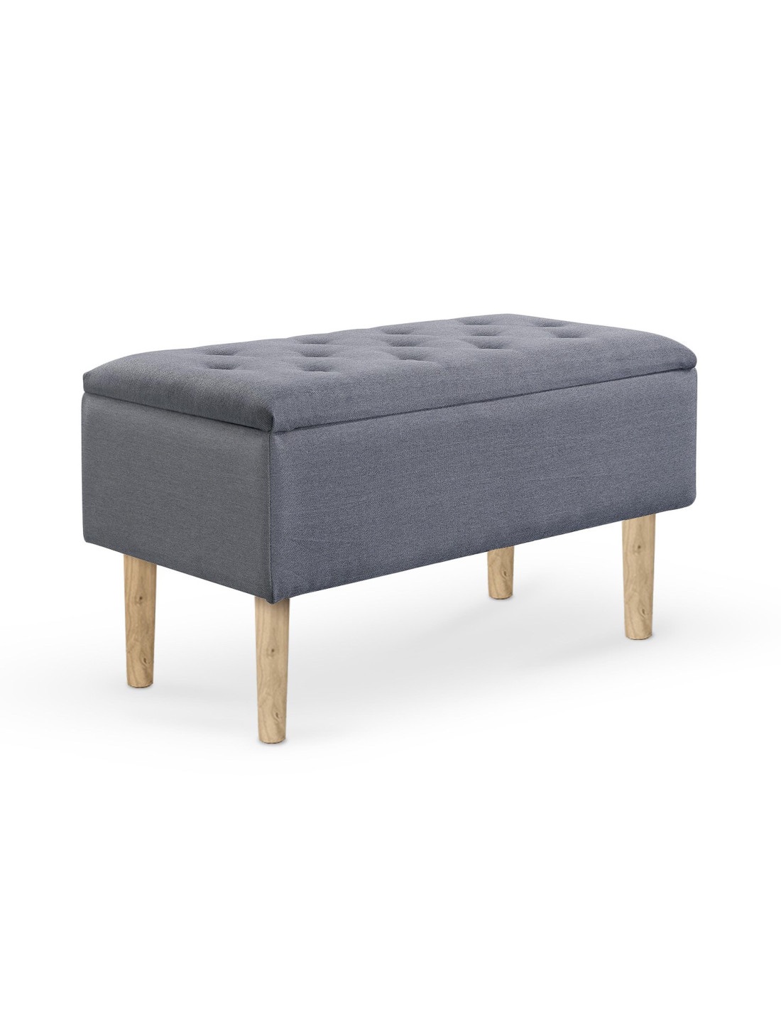 CLEO Ławka Tapicerowana z Pojemnikiem Popielata | Drewniane Nóżki