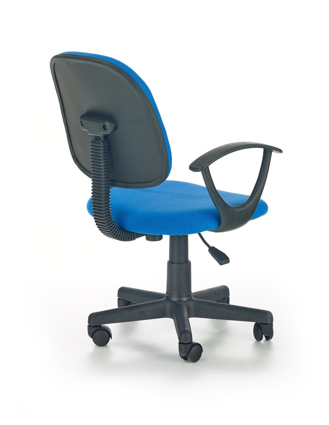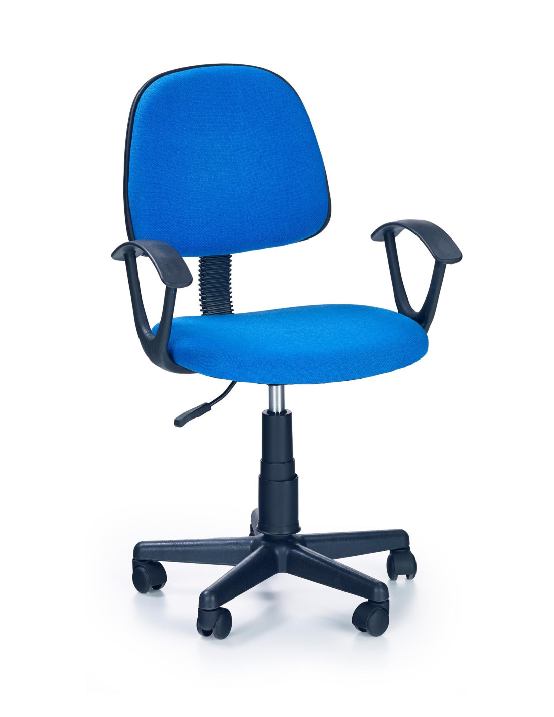 Prosty fotel głównie przeznaczony jest dla osób pracujących przy biurku w szczególności dla uczniów. Mechanizm obrotowy oraz kółka u podstawy krzesła pozwalają na jego sprawną mobilność. Fotel wyposażony jest również w podłokietniki, które zdecydowanie poprawiają komfort użytkowania. Wyrazisty kolor z pewnością przypadnie do gustu nie jednemu dziecku i ożywi pomieszczenie.