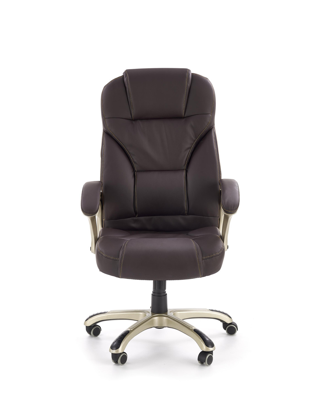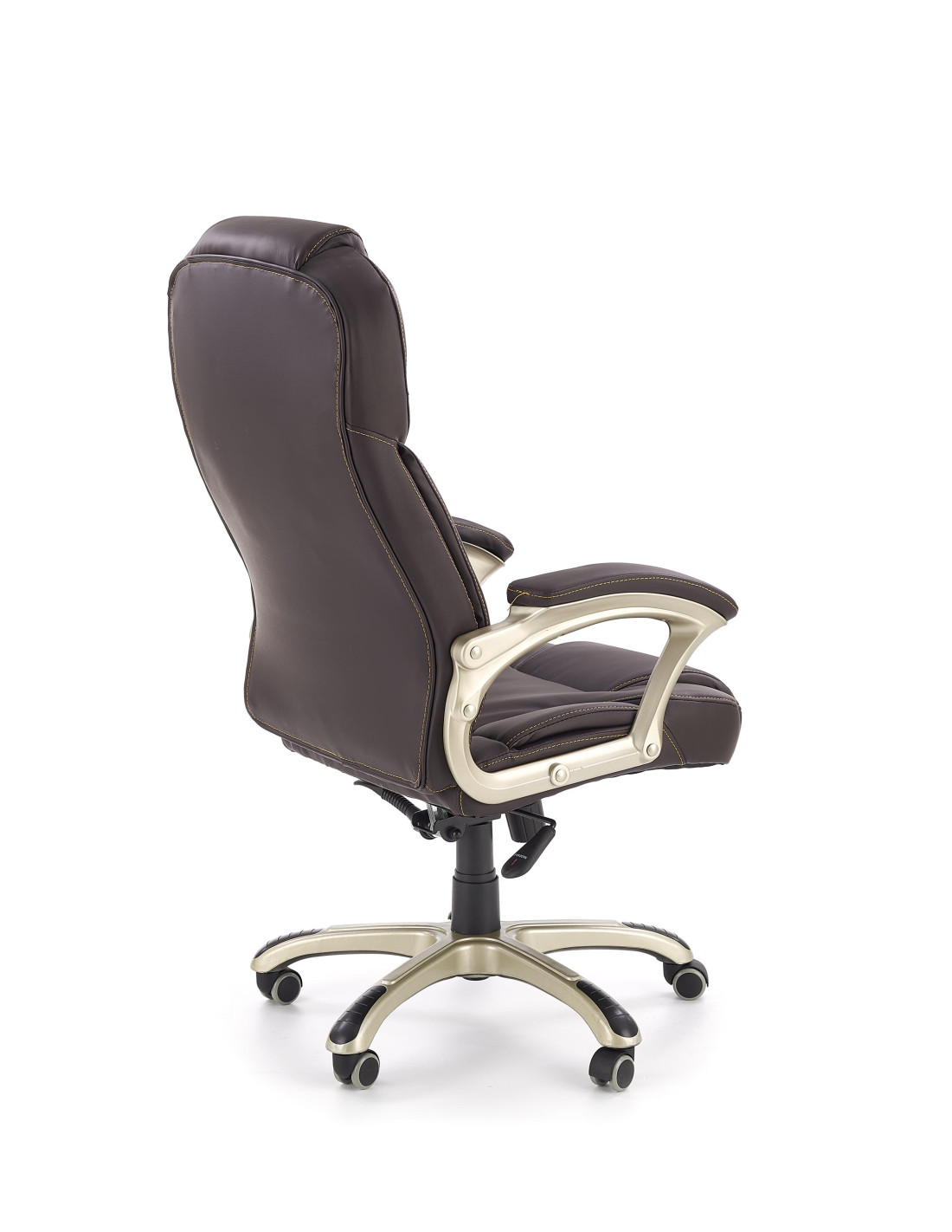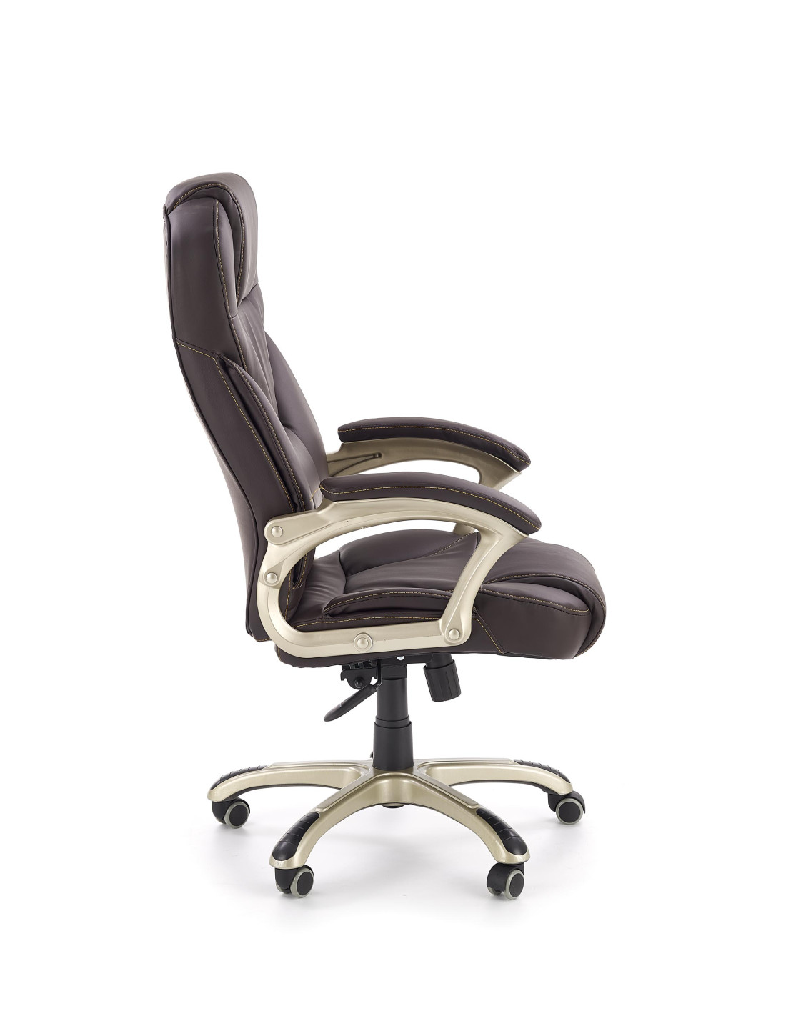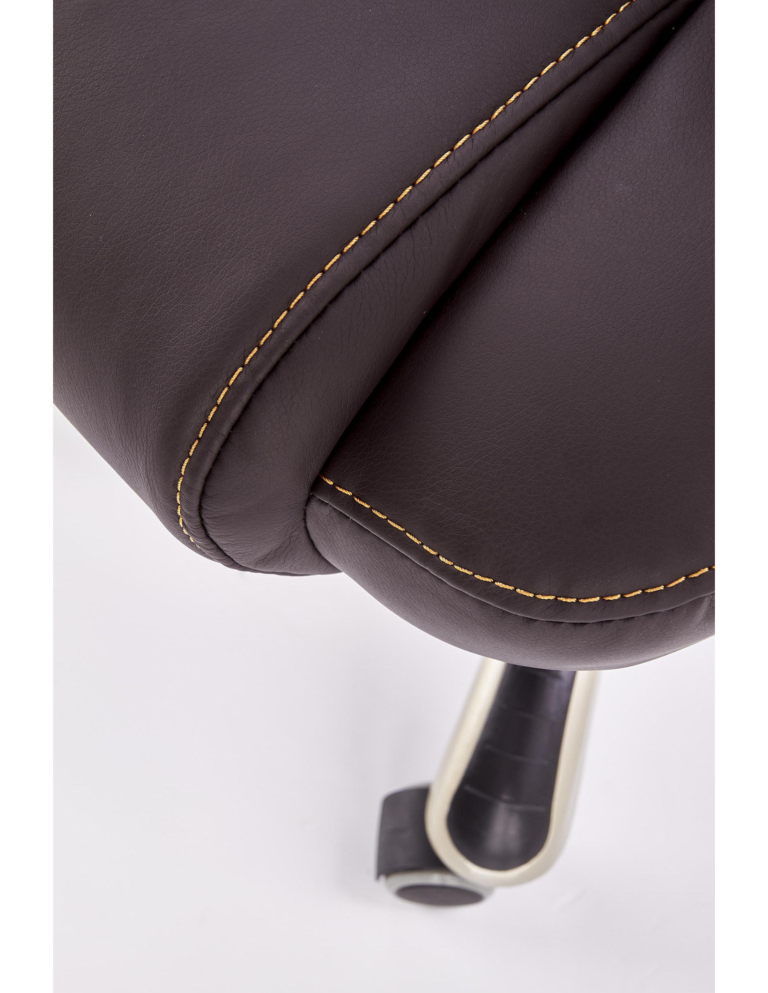 Wzbogać swoje wnętrze dzięki fotelowi gabinetowemu DESMOND, który łączy wyrafinowany styl z maksymalnym komfortem. Wysokie, ergonomiczne oparcie z wyraźnym podparciem lędźwiowym oraz grube, miękkie siedzisko sprawiają, że każda chwila spędzona w tym fotelu to czysta przyjemność. Ciemnobrązowa eco skóra nadaje elegancji, a pięcioramienna podstawa na kółkach zapewnia mobilność i stabilność.