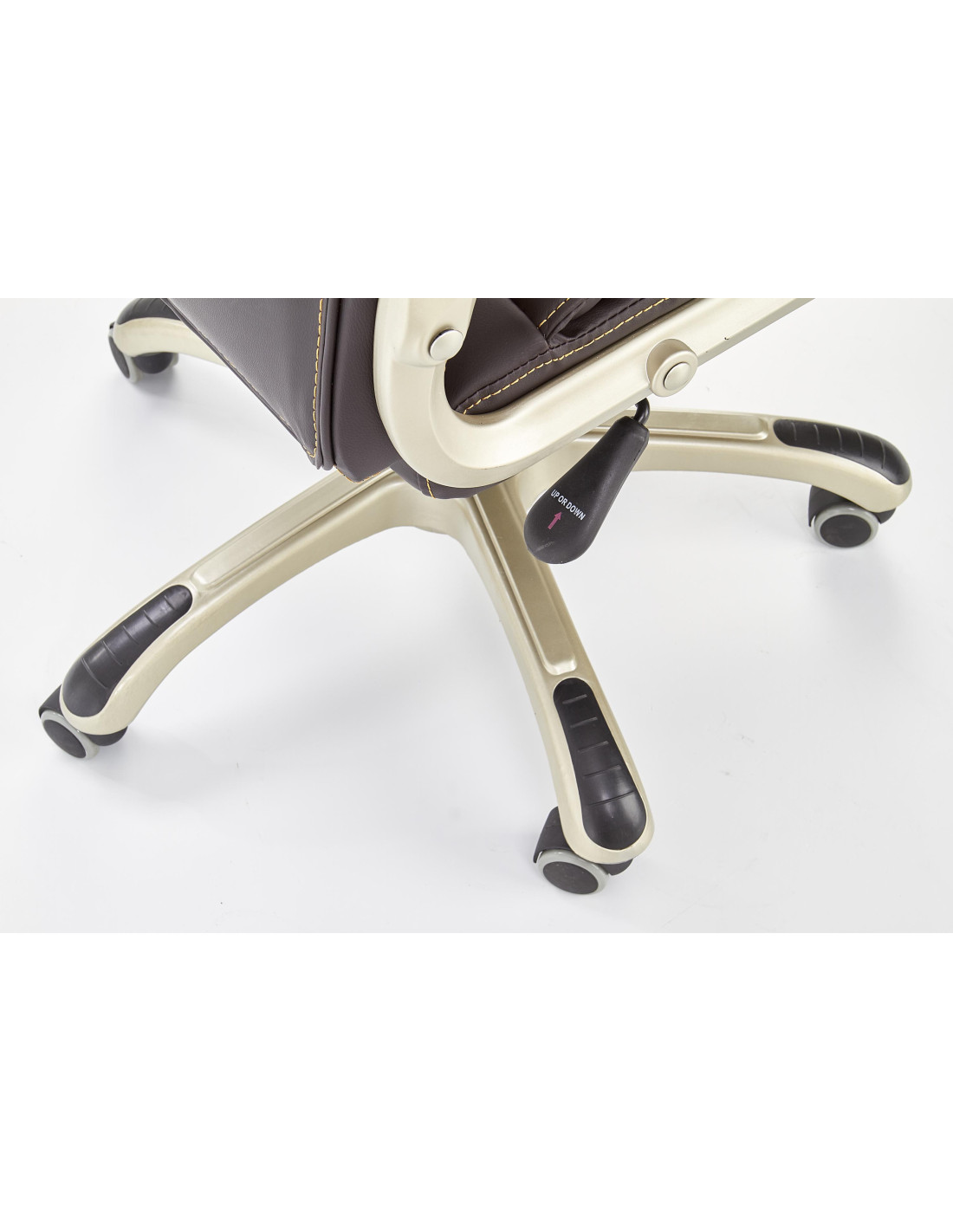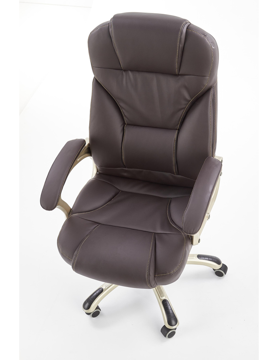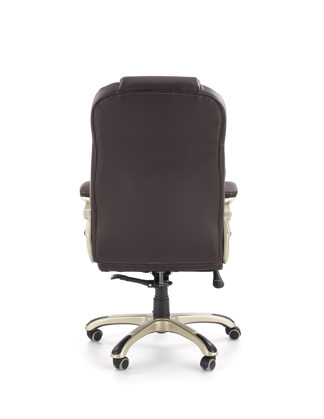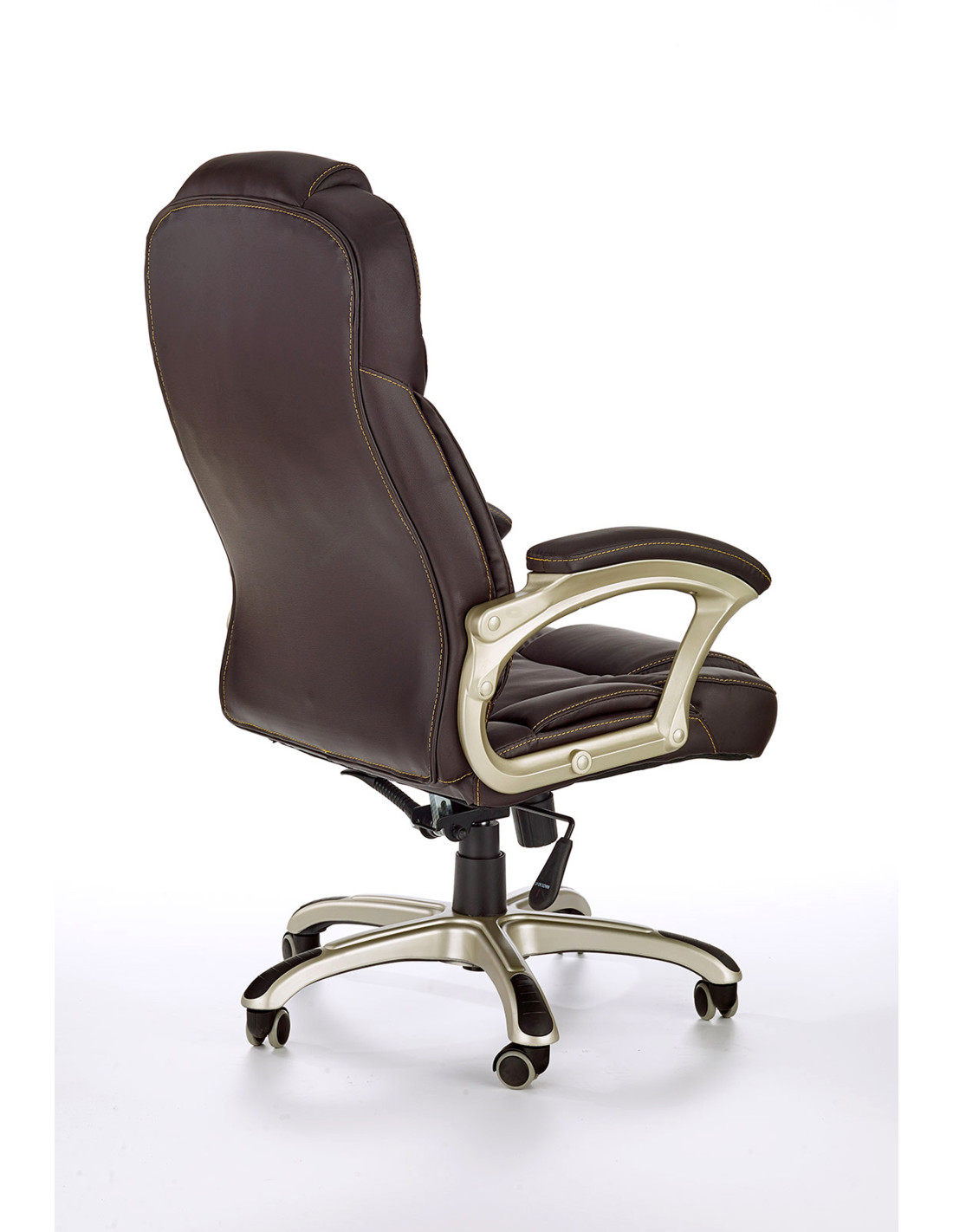 Wzbogać swoje wnętrze dzięki fotelowi gabinetowemu DESMOND, który łączy wyrafinowany styl z maksymalnym komfortem. Wysokie, ergonomiczne oparcie z wyraźnym podparciem lędźwiowym oraz grube, miękkie siedzisko sprawiają, że każda chwila spędzona w tym fotelu to czysta przyjemność. Ciemnobrązowa eco skóra nadaje elegancji, a pięcioramienna podstawa na kółkach zapewnia mobilność i stabilność.