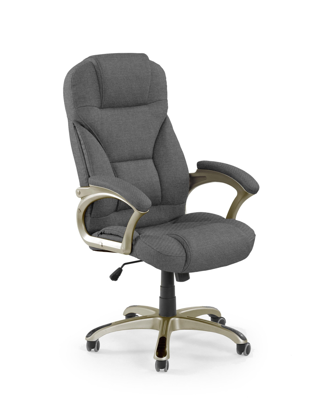 Ciesz się wyjątkowym designem fotela gabinetowego DESMOND 2, który łączy nowoczesną elegancję z maksymalnym komfortem. Tapicerowany materiałem o subtelnej teksturze, fotel ten wyróżnia się ergonomicznie wyprofilowanym oparciem oraz siedziskiem z dodatkowym wyściełaniem, co zapewnia niezwykłe doznania podczas siedzenia. Metalowe podłokietniki i podstawa w złocistym odcieniu dodają mu elegancji, a klasyczny biurowy kształt sprawia, że doskonale wpasuje się w każde wnętrze.