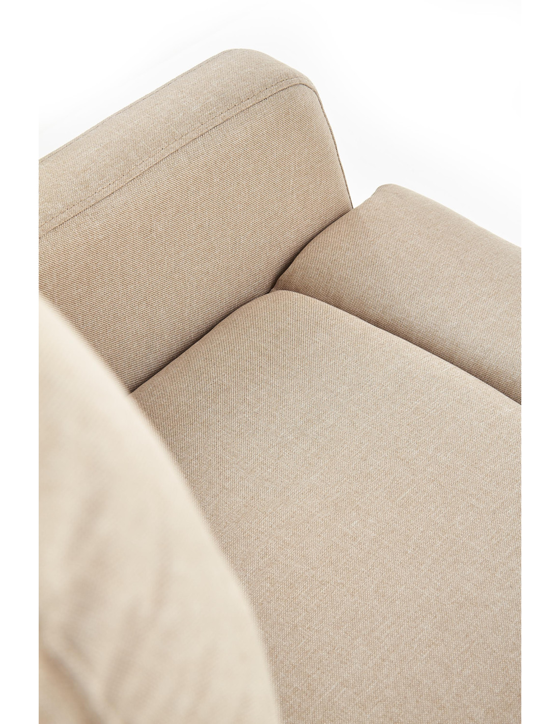 Miękkie, wyściełane siedzisko oraz zaokrąglony kształt fotela, w połączeniu z podłokietnikami, które są integralną częścią konstrukcji, zapewniają wyjątkowy komfort. Fotel w kolorze beżowym doskonale wpasuje się w nowoczesne wnętrza z nutą klasyki, przyciągając spojrzenia swoim eleganckim wyglądem.