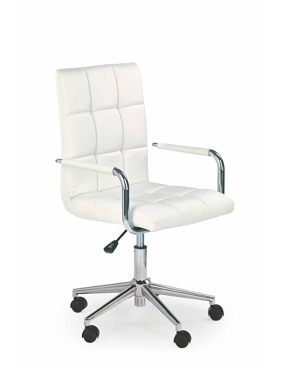 GONZO 2 Fotel Młodzieżowy Eco Skóra Pikowana Biała / Chromowane Elementy