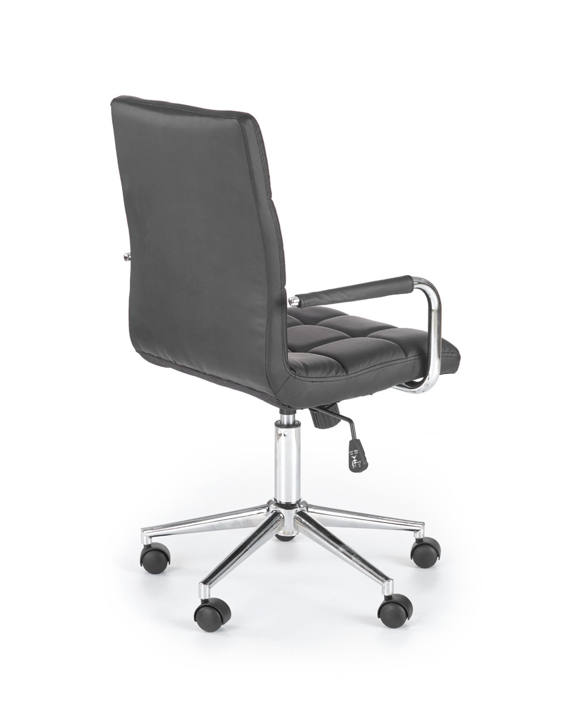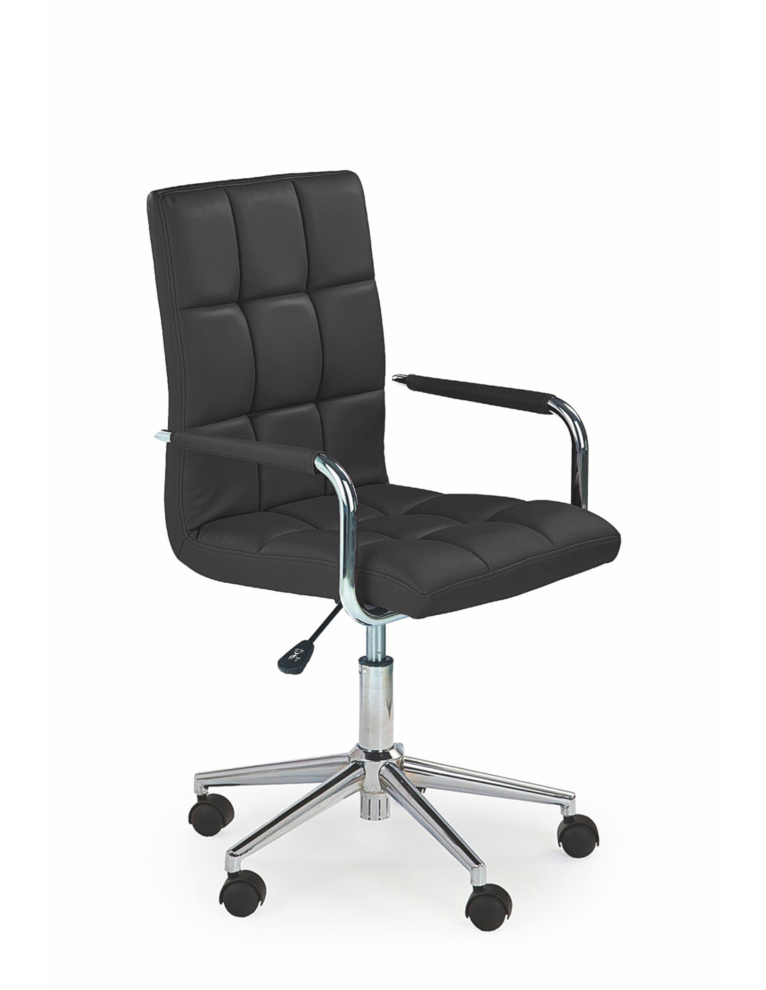 Ciesz się wyjątkowym designem fotel młodzieżowy GONZO 2, który łączy nowoczesny styl z elegancją. Wykonany z wysokiej jakości eco-skóry w kolorze czarnym, fotel zachwyca pikowanym oparciem i siedziskiem, które dodają mu klasycznego wyglądu. Metalowe, chromowane podłokietniki z czarnymi osłonami oraz stabilna pięcioramienna podstawa na kółkach sprawiają, że przemieszczanie się staje się niezwykle komfortowe i praktyczne.