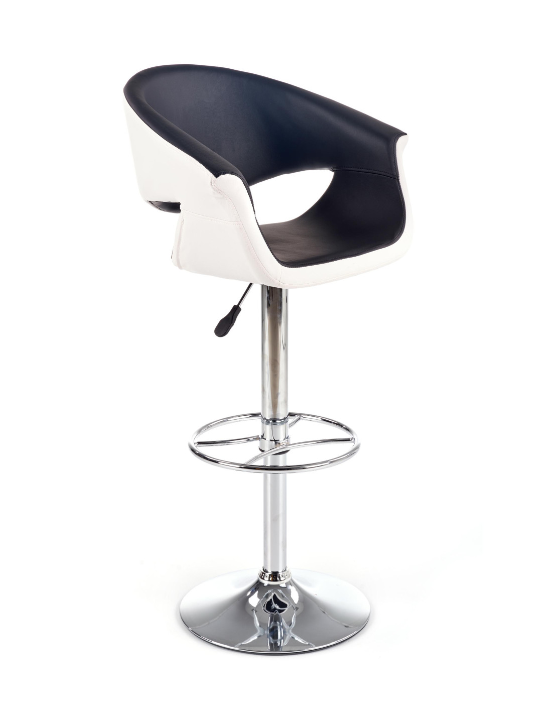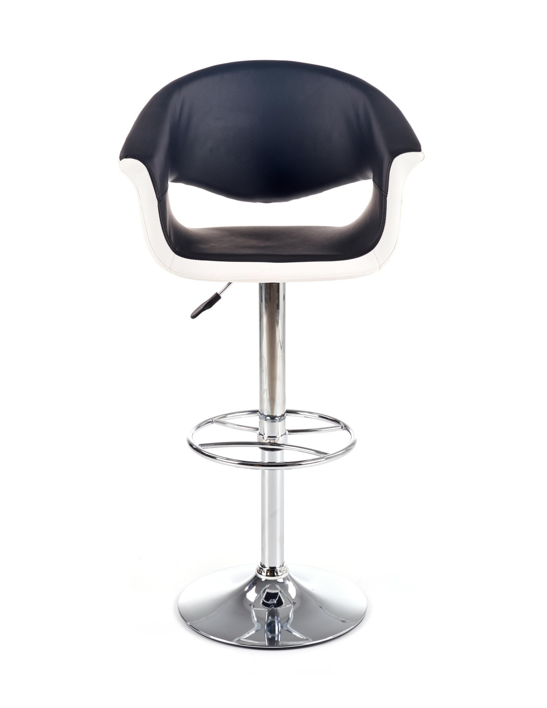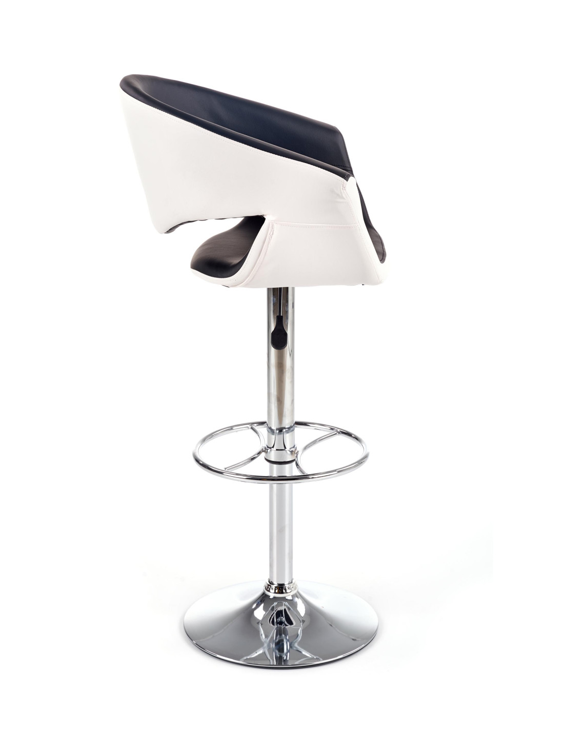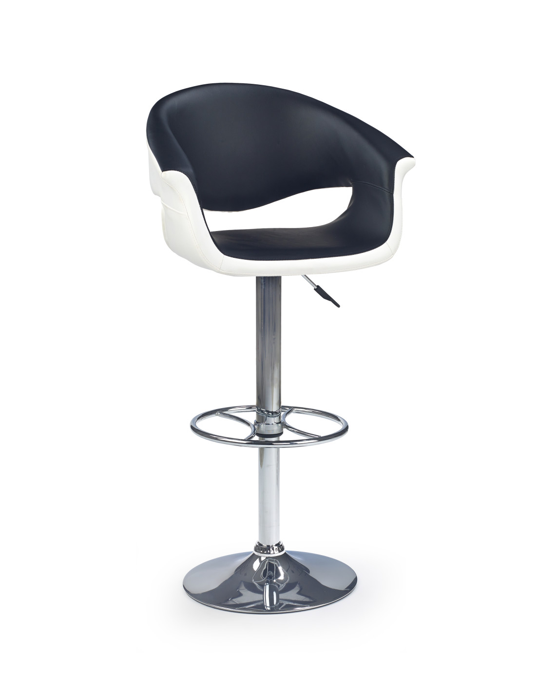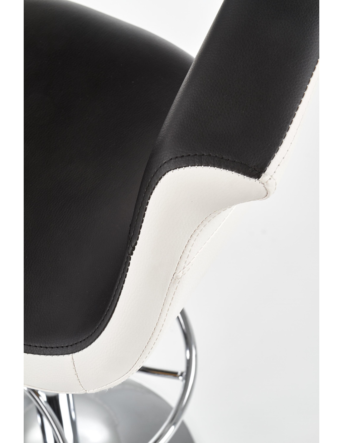 Zachwyć się hokerem H46, który doskonale łączy nowoczesny design z funkcjonalnością. Wykonany z wysokiej jakości eco skóry w eleganckim biało-czarnym zestawieniu, ten hoker stanie się stylowym akcentem w Twoim wnętrzu. Okrągła, chromowana podstawa oraz regulacja wysokości sprawiają, że jest to mebel nie tylko estetyczny, ale również praktyczny. Dzięki zaokrąglonemu siedzisku z wycięciami na ręce, komfort siedzenia staje się niezapomniany.