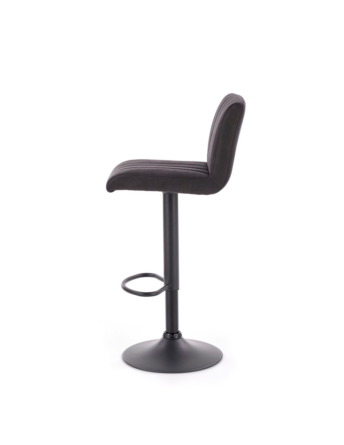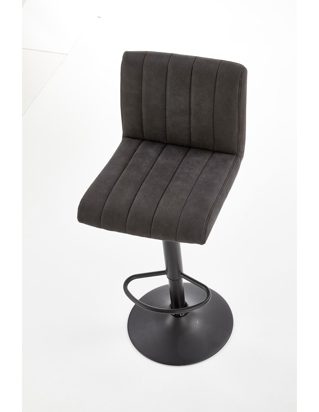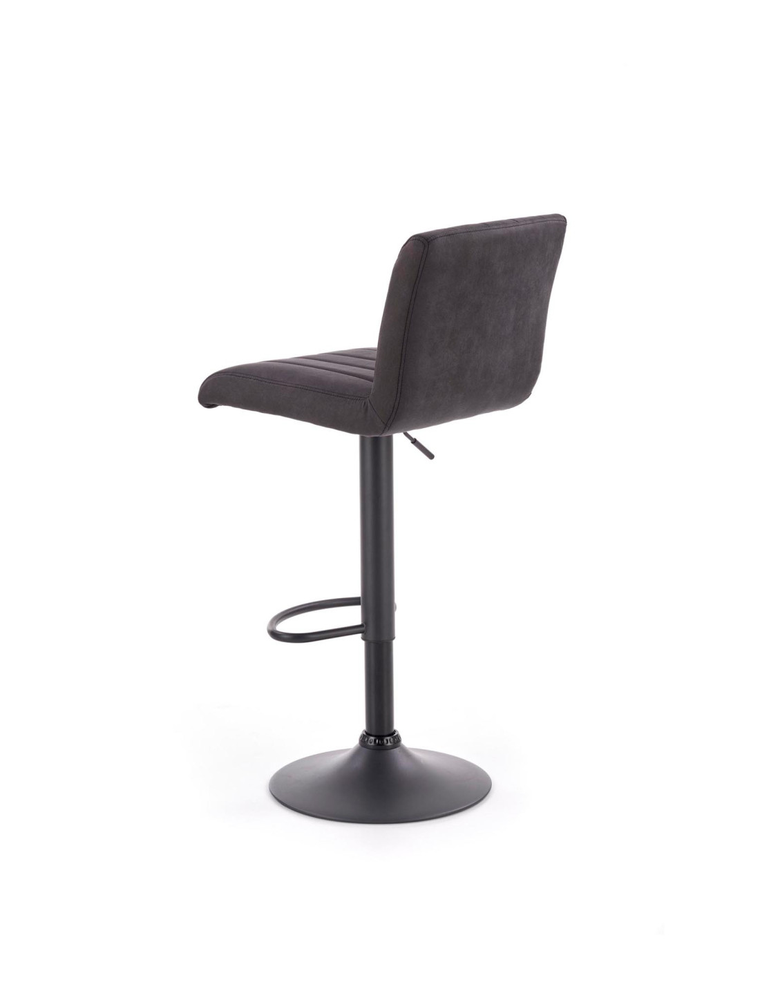 Hoker wyposażony jest w regulację wysokości, co pozwala na dostosowanie go do różnych wysokości stołów. Pionowe przeszycia siedziska oraz prostokątne kształty dodają mu nowoczesnego charakteru, a metalowa podstawa z okrągłą stopą gwarantuje stabilność i elegancję.