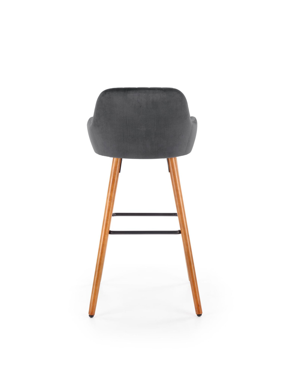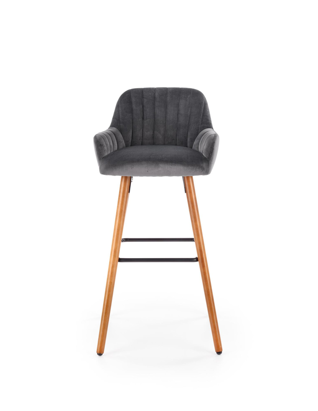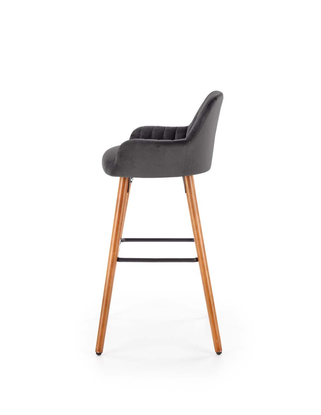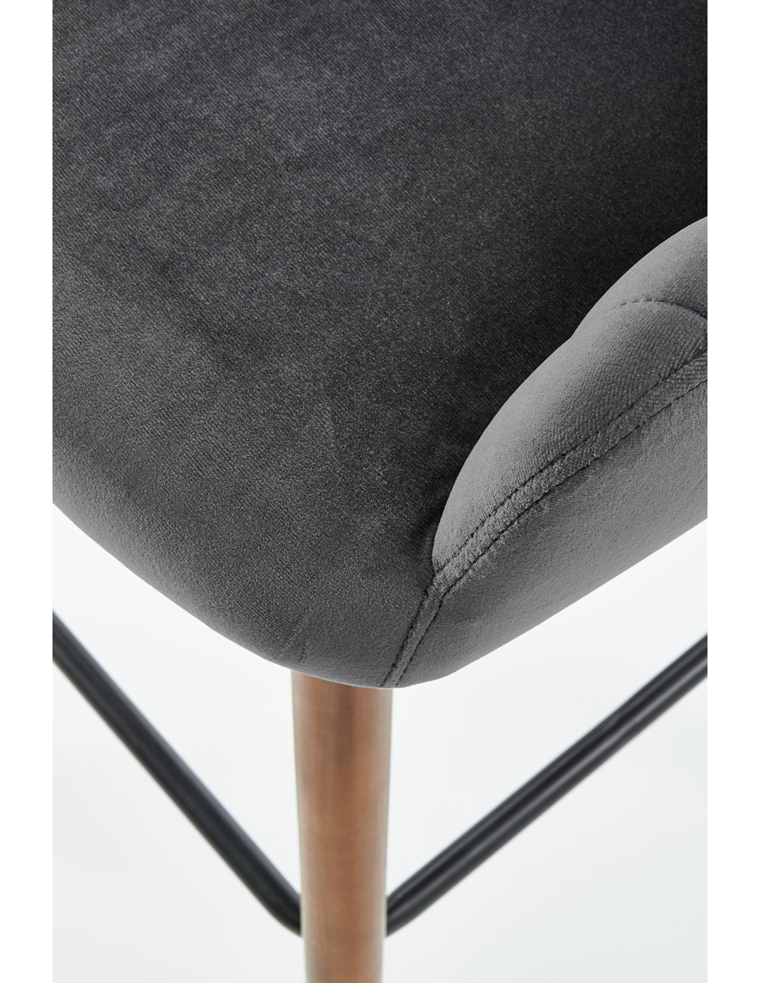Szukasz mebla, który spełni Twoje oczekiwania? Hoker H93 to połączenie nowoczesnego designu z wyrafinowanym komfortem. Ciemnoszare, welurowe siedzisko o lekko zaokrąglonym kształcie i pionowych przeszyciach zapewnia wygodę podczas każdej chwili spędzonej w jego towarzystwie. Nogi hokera wykonane z litego drewna w ciepłym odcieniu orzecha dodają mu elegancji, a metalowy podnóżek w kolorze czarnym zapewnia stabilność i praktyczność.