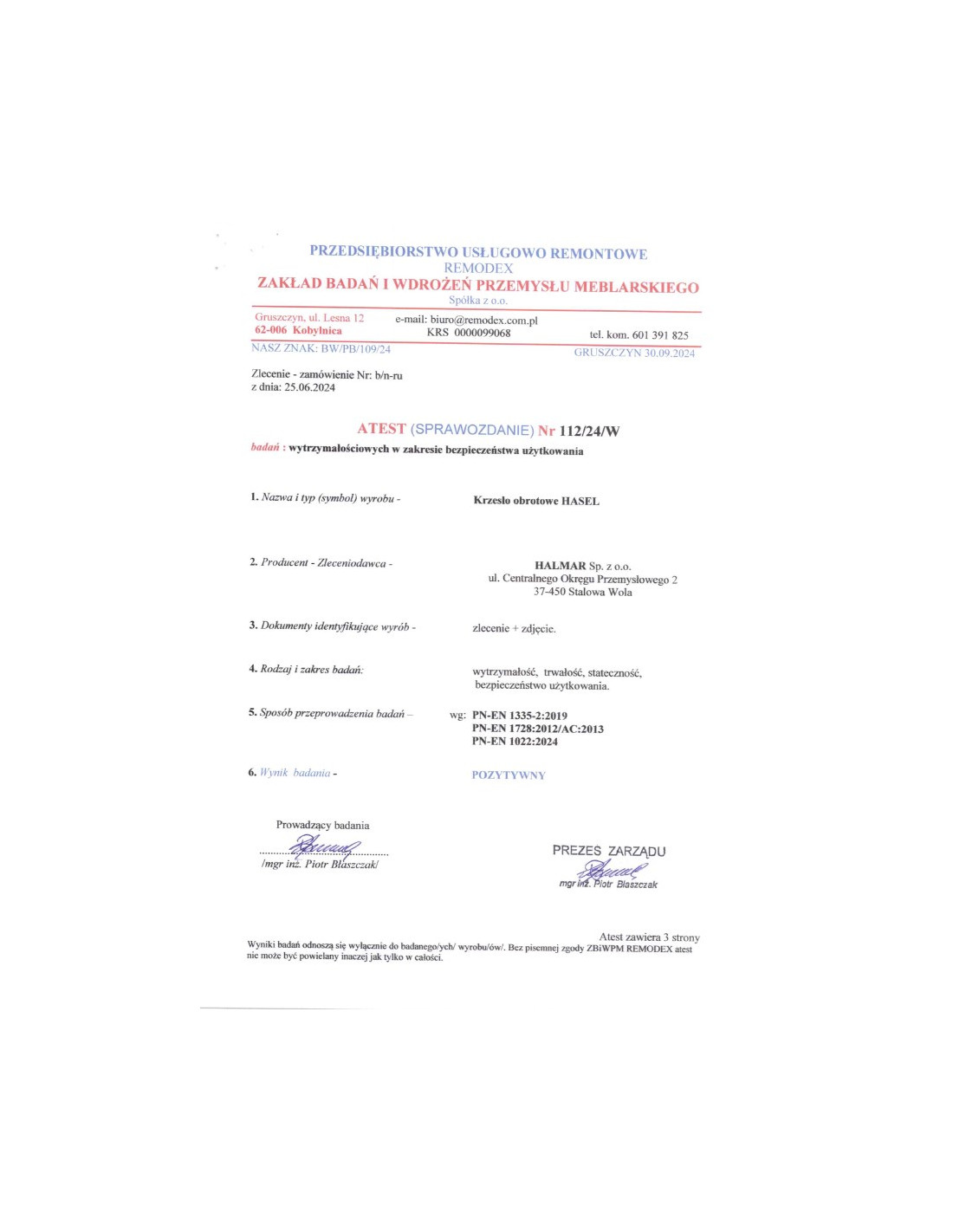 Wymiary i Specyfikacja - Fotel Gabinetowy HASEL