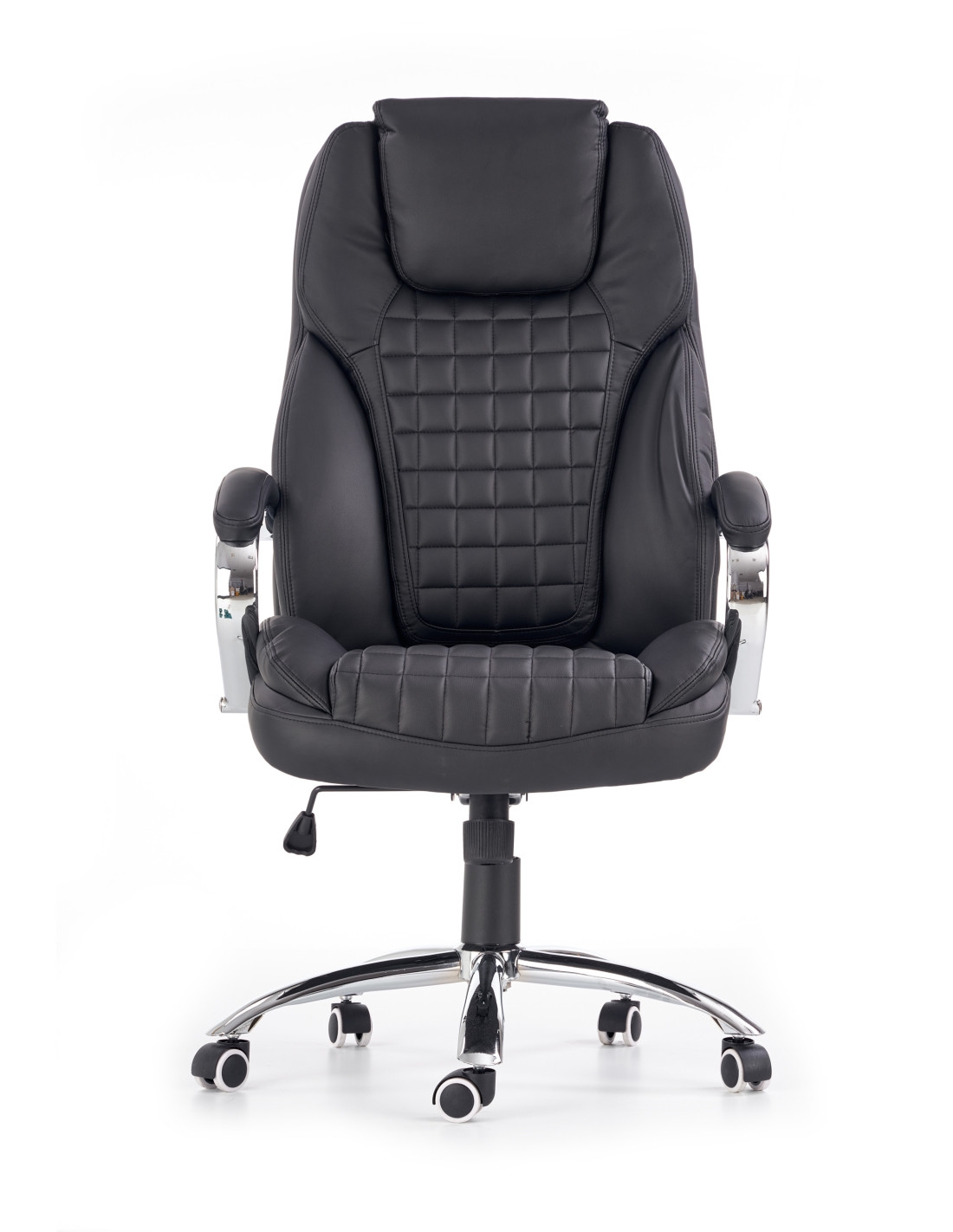 Wzbogać swoje wnętrze za pomocą fotel biurowy KING, który łączy nowoczesny design z ergonomicznym kształtem. Z wysokim oparciem i regulowanym zagłówkiem, ten fotel zapewnia wsparcie, którego potrzebujesz podczas długich godzin pracy. Pikowane siedzisko oraz oparcie dodają elegancji, a chromowana podstawa z pięcioma kółkami zapewnia mobilność i stabilność.