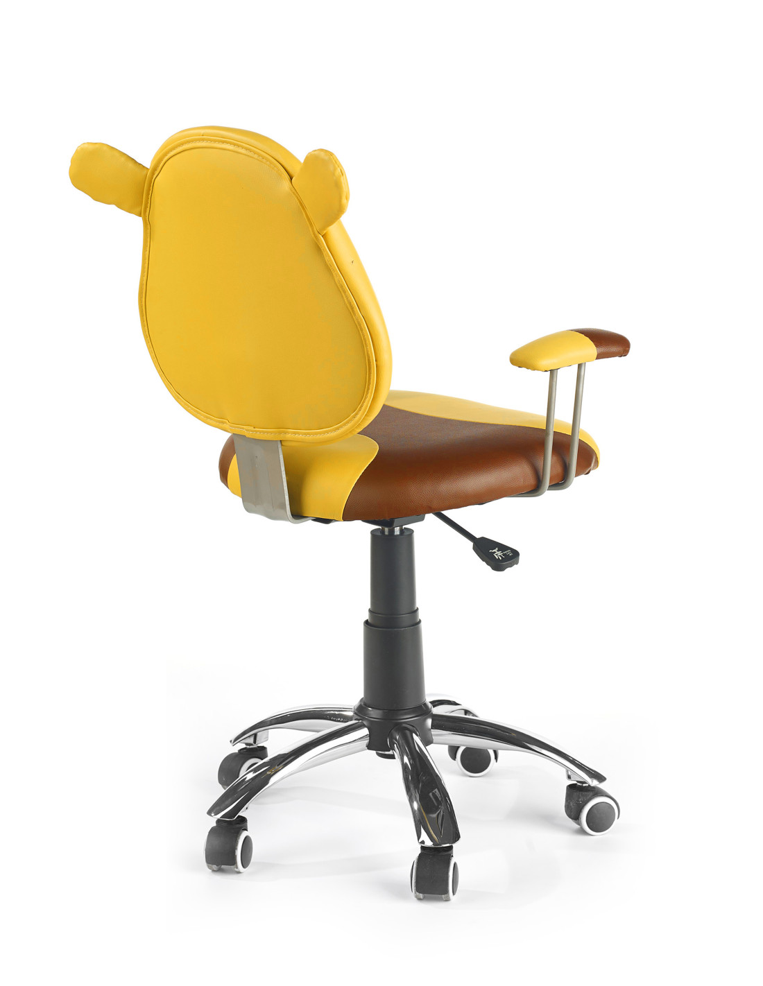 Fotel KUBUŚ wyróżnia się oparciem w kształcie głowy misia, okrągłym siedziskiem oraz regulacją wysokości.