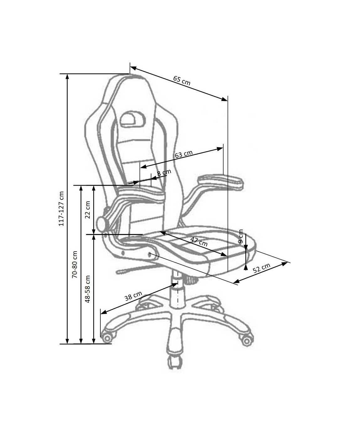 Szerokość wynosi 63 cm, głębokość 65 cm, a wysokość można regulować w zakresie 117-127 cm, z wysokością siedziska od 48 do 58 cm.