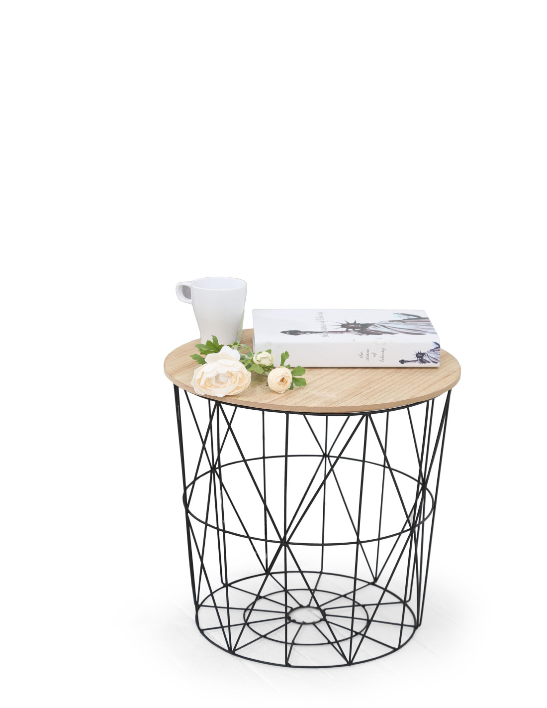 MARIFFA Ława fi42/41 cm Naturalny/Czarny | Funkcja Kosza / Schowka