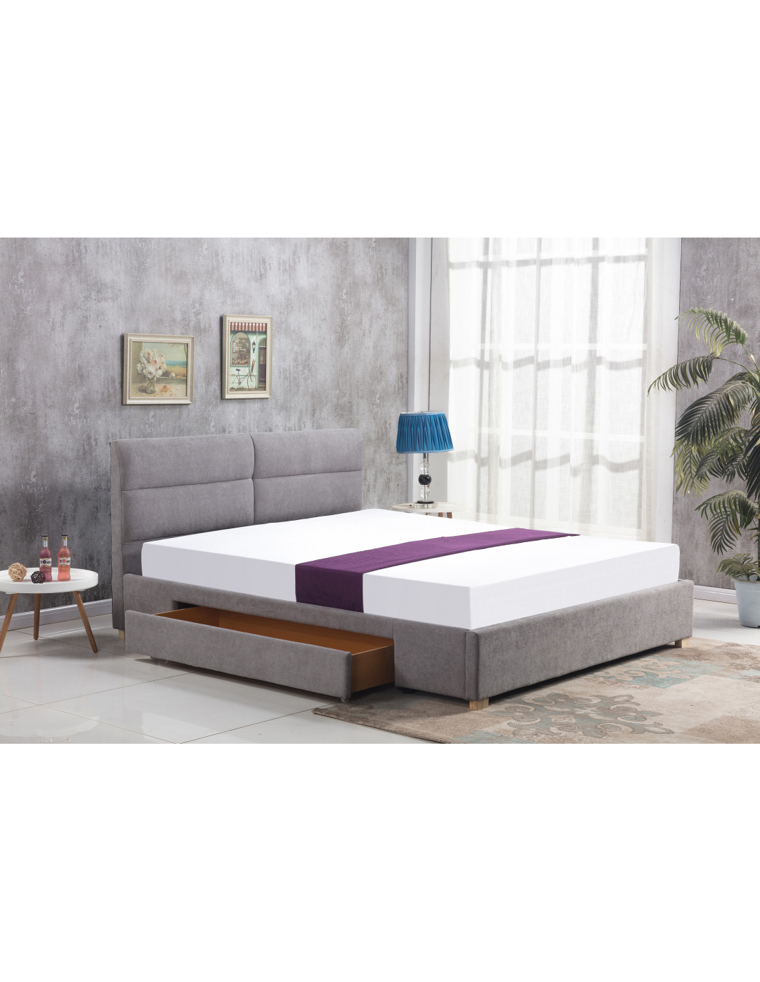 MERIDA Łóżko 160x200 cm Drewniane z Szufladą Jasny Popiel - Subtelny Styl