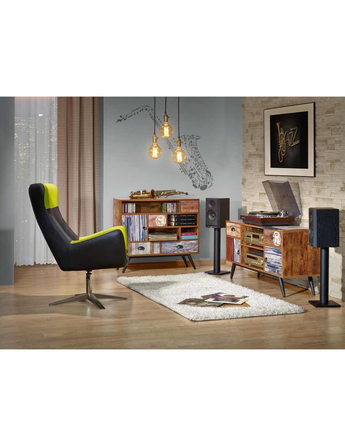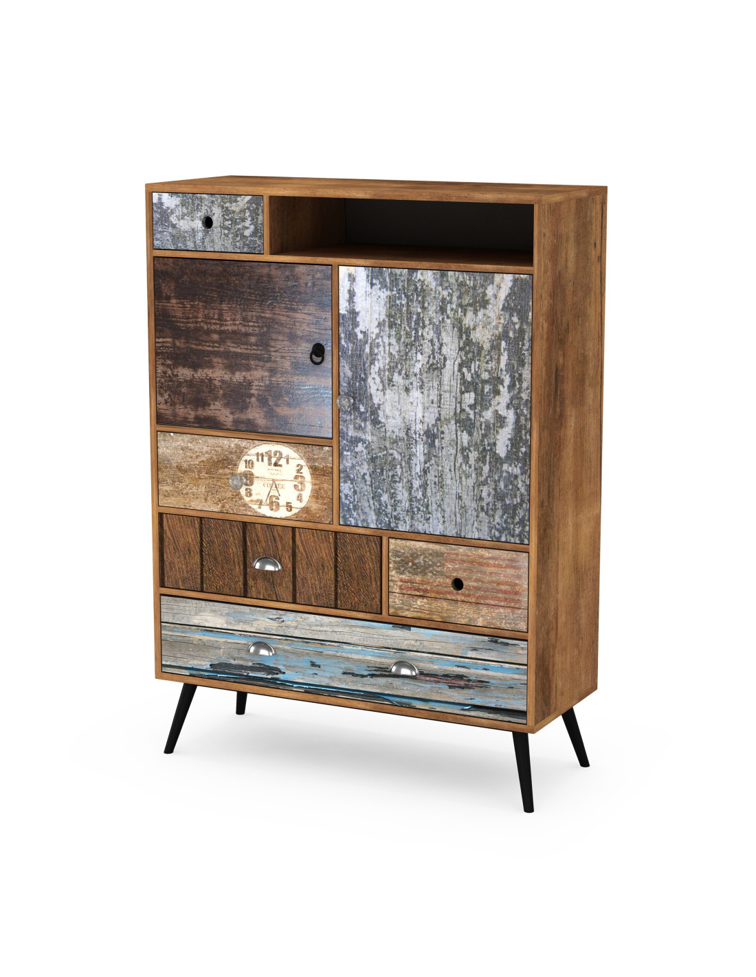 MEZO KM4 Wielobarwna Komoda 100/29/140 cm z Szufladami i Półkami | Wyrafinowany Styl Vintage