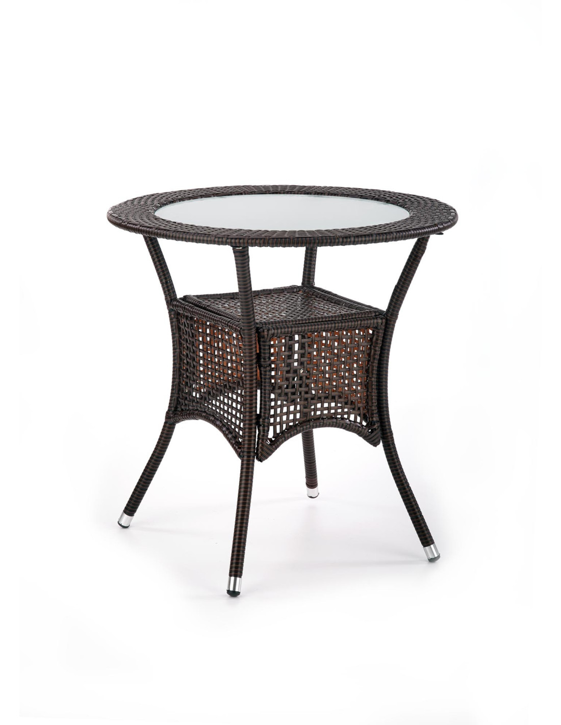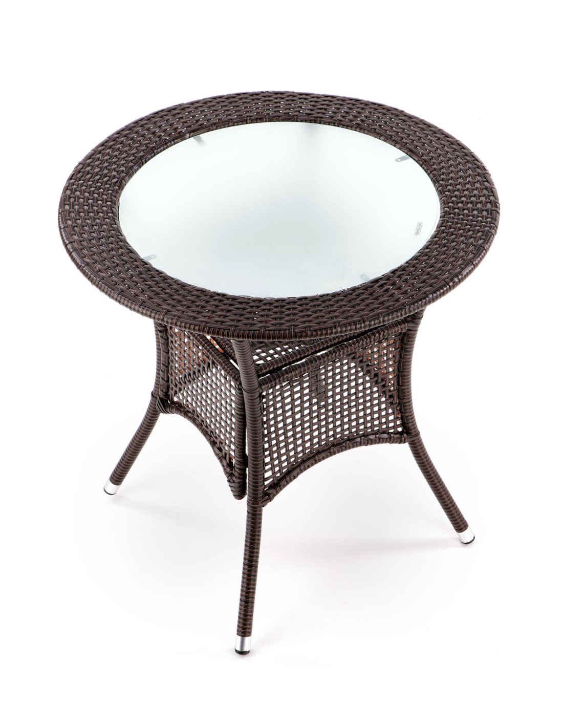 MIDAS Stół Ogrodowy Okrągły fi74/74 cm Ciemny Brąz | Szkło/Rattan