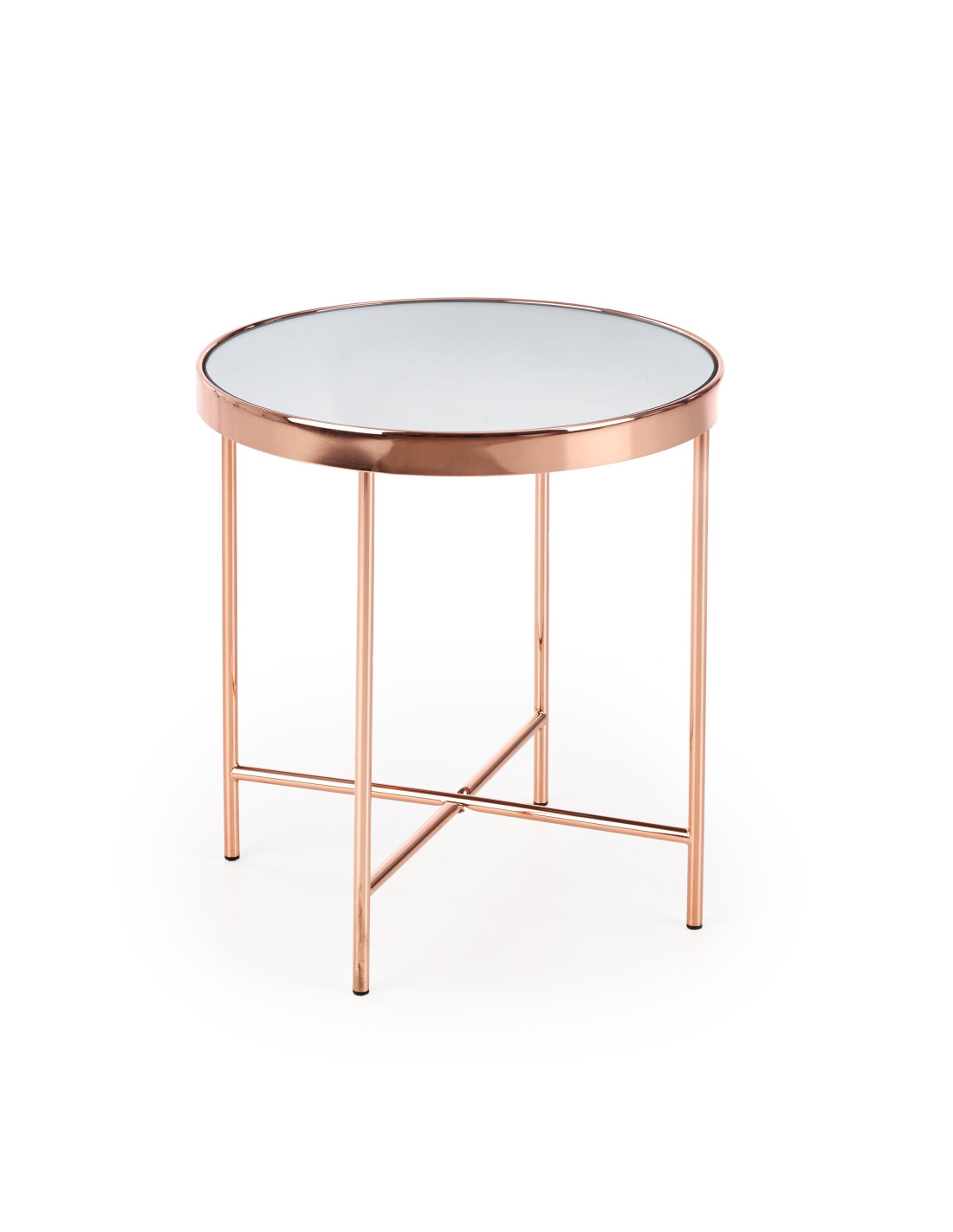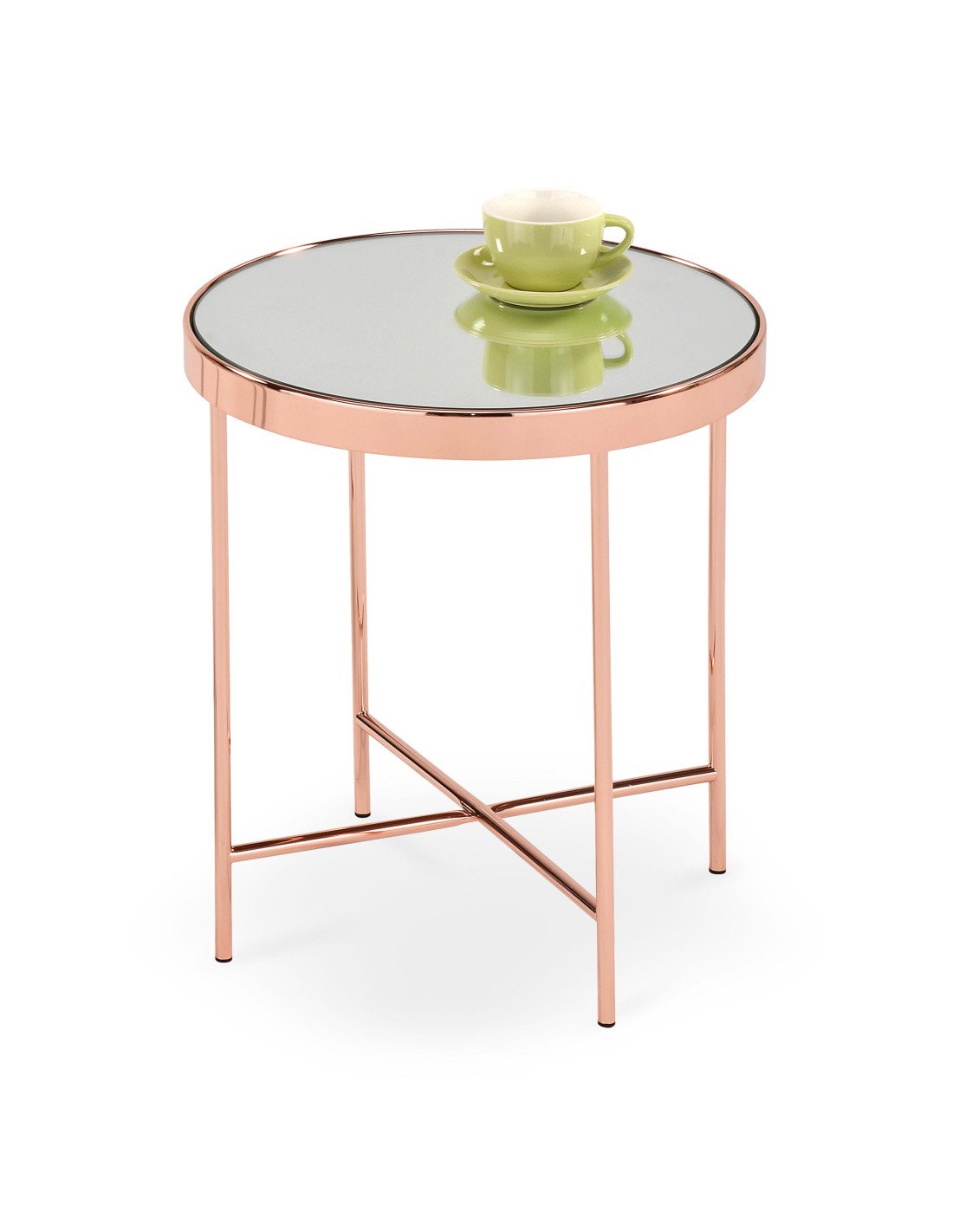 Kadi to elegancki stolik, który bez wątpienia przypadnie do gustu osobom ceniącym sobie połączenie stali i szkła. Ława doskonale wpasuje się zarówno do nowoczesnych jak i klasycznych aranżacji wnętrz. Dobór wysokiej jakości materiałów sprawia, że mebel jest odporny na uszkodzenia i łatwy w pielęgnacji. Stelaż został wykonany ze stali w kolorze miedzi, natomiast do konstrukcji blatu zastosowano szkło. Dzięki niewielkim rozmiarom, Kadi odnajdzie zastosowanie w różnego rodzaju pomieszczeniach.