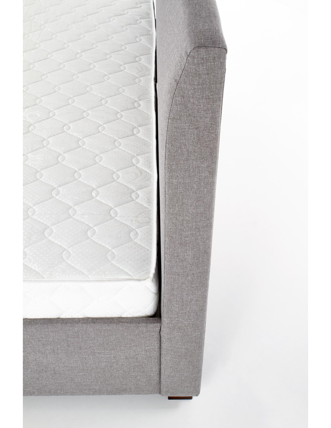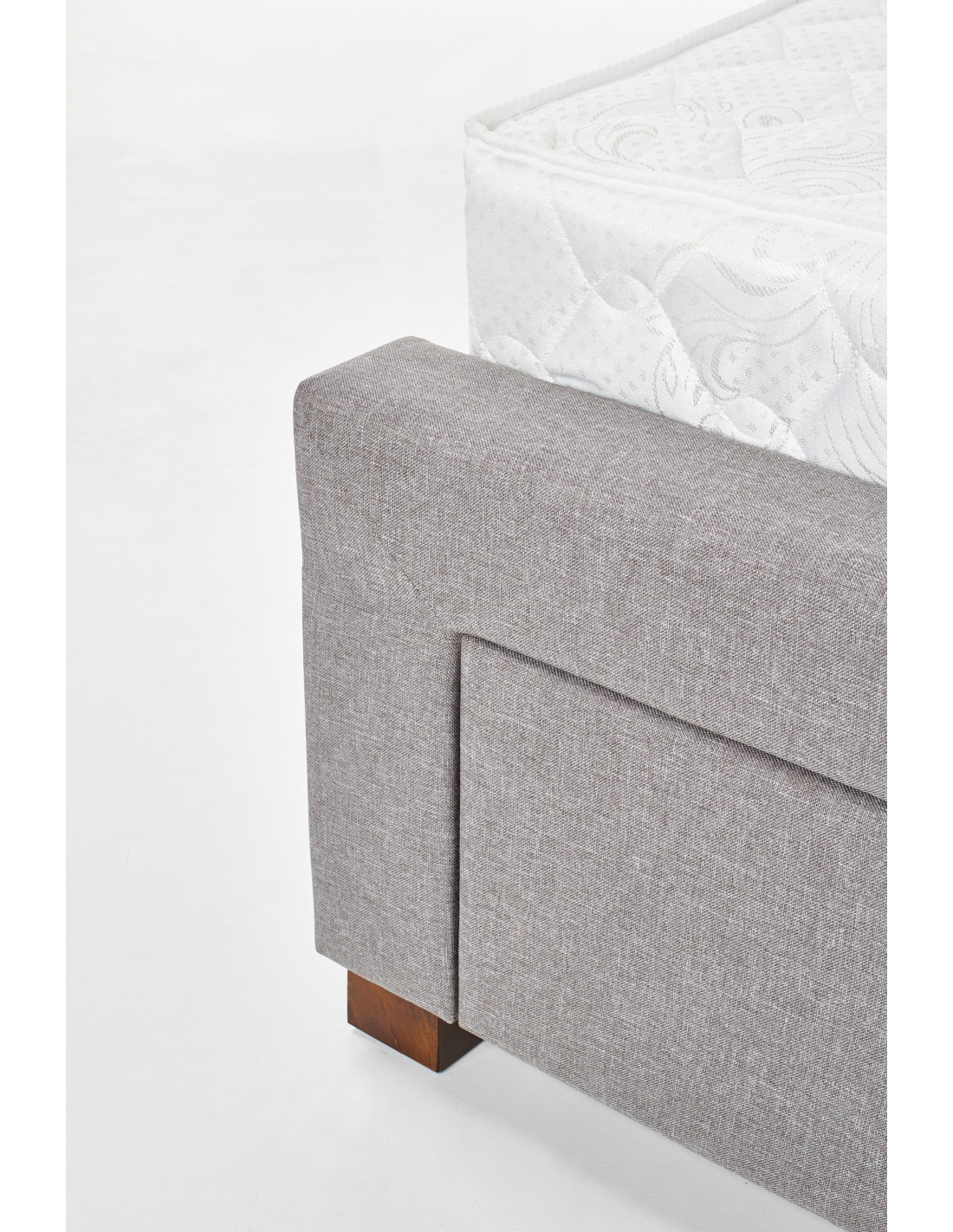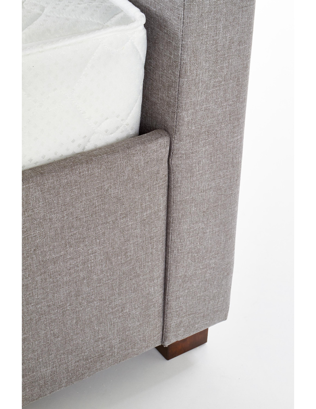Łóżko ANASTAZJA wykonane jest z drewna oraz tkaniny w eleganckim kolorze popielatym.