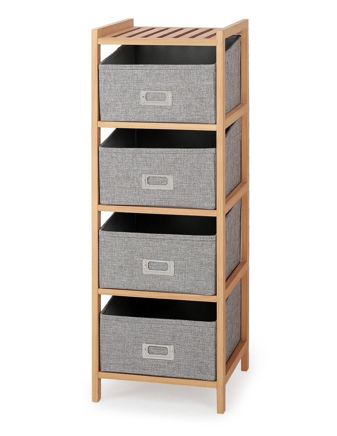 REG10 Regał Drewniany 28/26/83 cm z Szufladami Naturalny/Popielaty