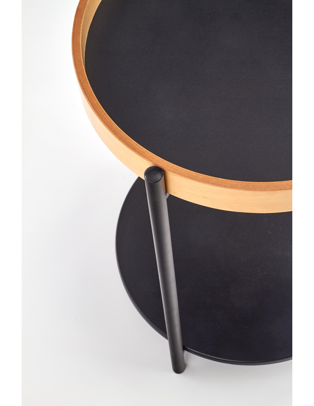 Wybierz stylową ławę, która stanie się sercem Twojego wnętrza! Ława ROLO to idealne połączenie nowoczesnego designu z funkcjonalnością. Okrągły, czarny blat otoczony elegancką ramą ze sklejki giętej przyciąga wzrok i doskonale komponuje się z każdym stylem aranżacji. Dzięki dwóm poziomym powierzchniom, górnej i dolnej, zyskujesz dodatkowe miejsce na przechowywanie książek, kawy czy dekoracji.