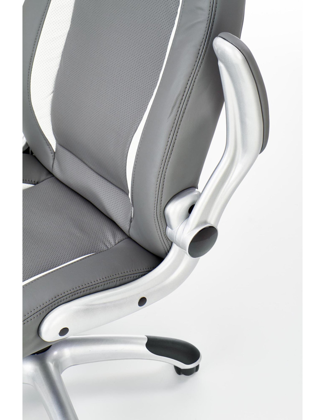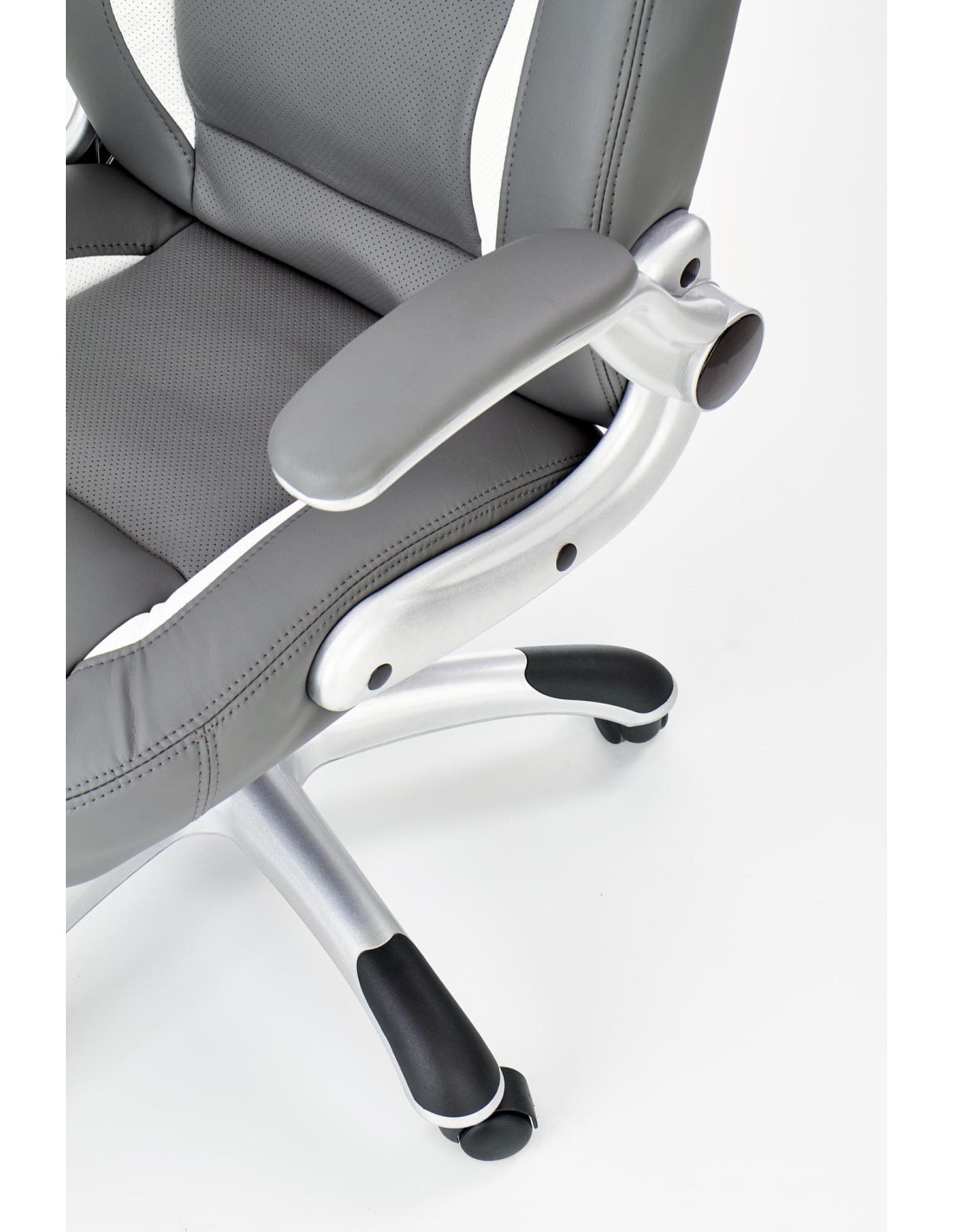 Fotel wykonany jest z wysokiej jakości eco skóry perforowanej, co zapewnia komfort i łatwość w utrzymaniu czystości.