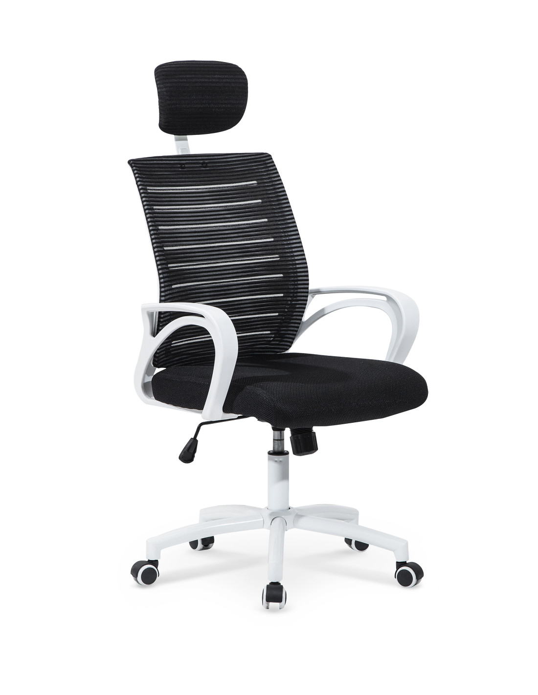 SOCKET Fotel Biurowy Biało-Czarny z Regulowanym Zagłówkiem – Komfort w Nowoczesnym Stylu