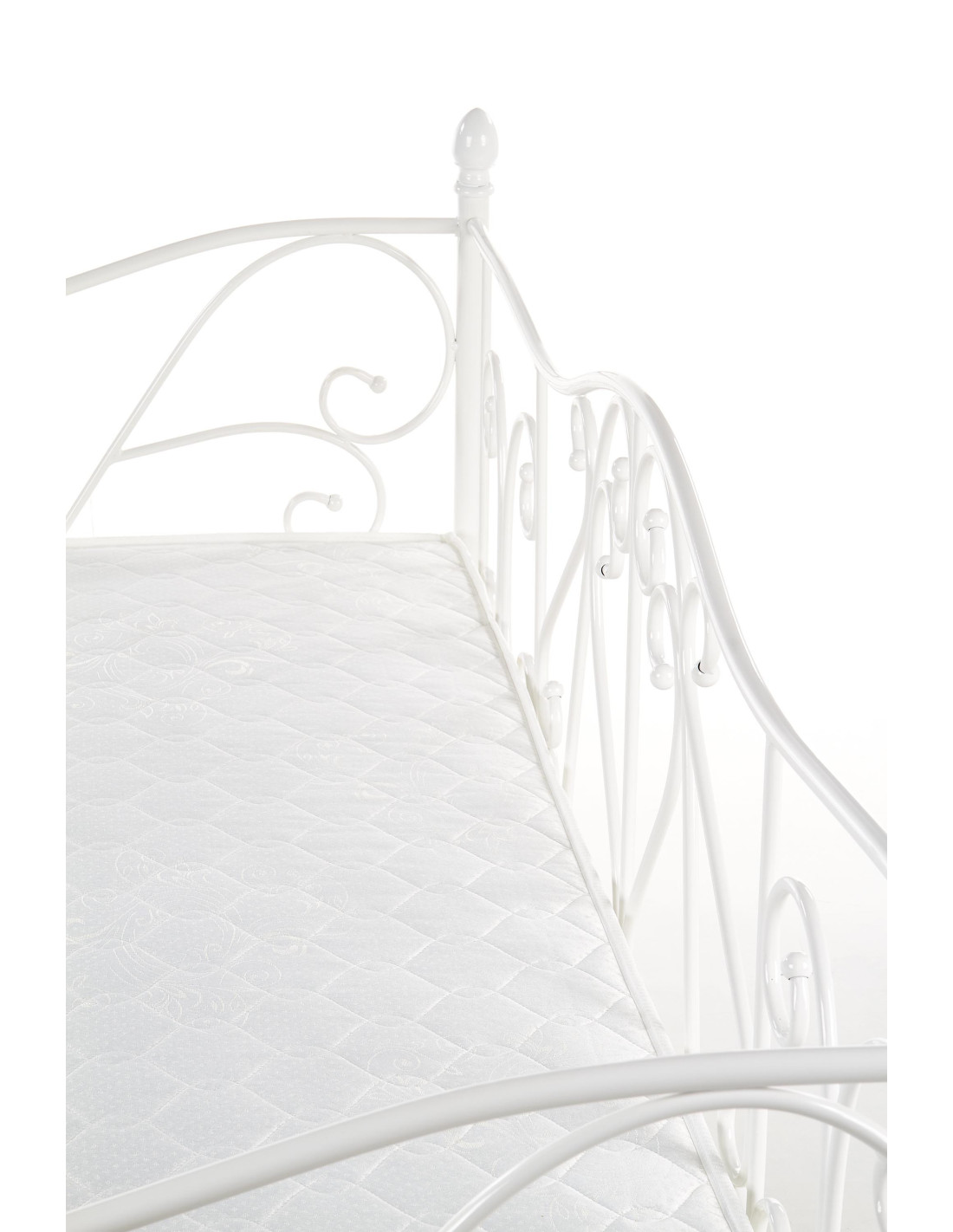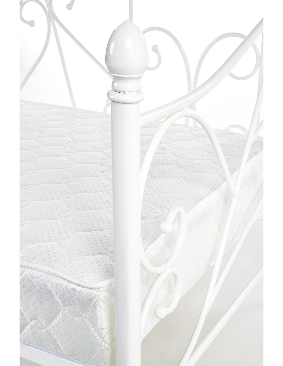 Ciesz się wyjątkowym designem łóżka metalowego SUMATRA, które wprowadzi do Twojej sypialni elegancję oraz romantyczny urok. Jego ozdobny zagłówek i oparcie z dekoracyjnymi, zakręconymi wzorami dodają mu niepowtarzalnego charakteru. Wykonane z malowanej proszkowo stali w kolorze białym, łóżko SUMATRA jest idealnym wyborem do wnętrz w stylu shabby chic, prowansalskim lub romantycznym. Dzięki wysokim, smukłym nogom zakończonym kulistymi elementami, łóżko nie tylko zachwyca wizualnie, ale także zapewnia komfort i stabilność.