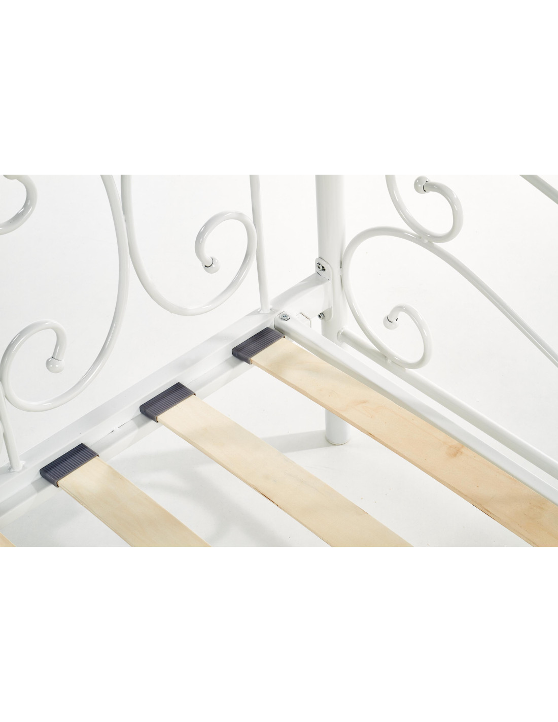 SUMATRA Łóżko Metalowe 90x200 cm z Drewnianym Stelażem Białe - Klasyczne