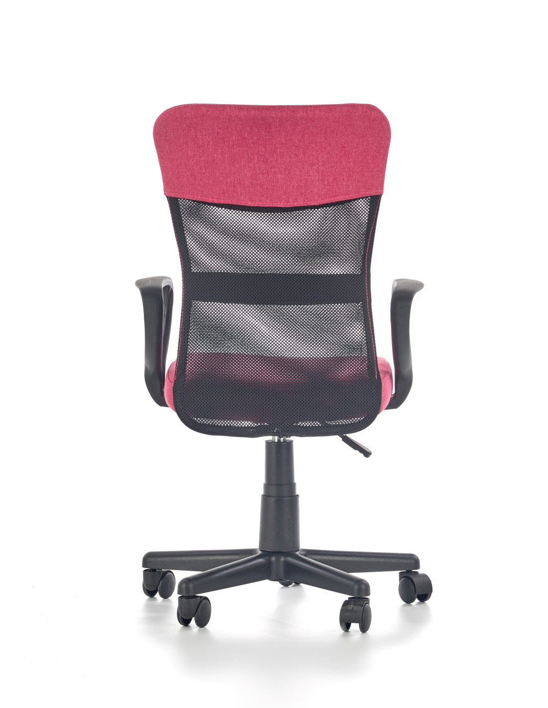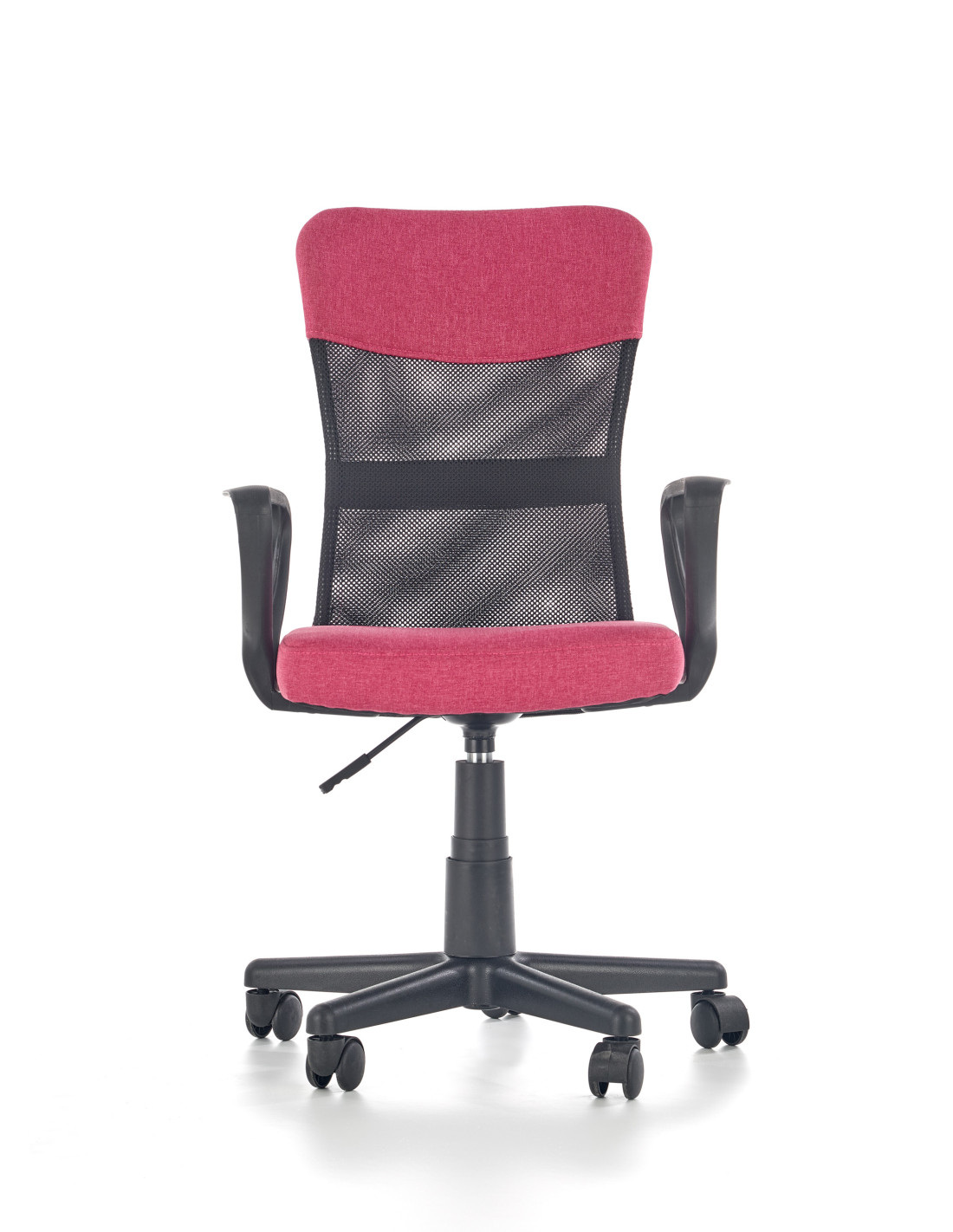 Ciesz się nowym fotelem młodzieżowym TIMMY, który wprowadza do Twojego wnętrza nowoczesny design oraz wyjątkowy komfort. Jego popielato-różowa kolorystyka oraz starannie zaprojektowane detale sprawiają, że jest to idealny wybór do każdego młodzieżowego pokoju czy biura. Siedzisko i oparcie tapicerowane różowym materiałem, a środkowa część oparcia wykonana z czarnej siatki, zapewniają doskonałą wentylację oraz wygodę podczas pracy lub nauki.