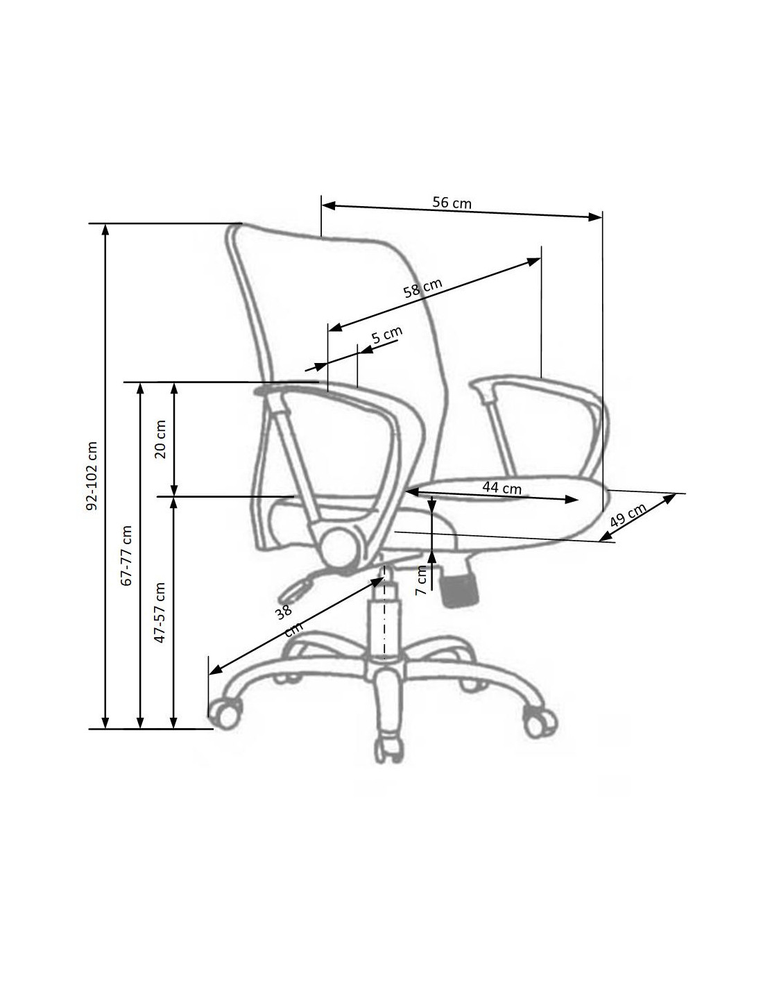 Szerokość wynosi 58 cm, głębokość 56 cm, a wysokość to 92-102 cm, z możliwością regulacji wysokości siedziska od 47 do 57 cm.