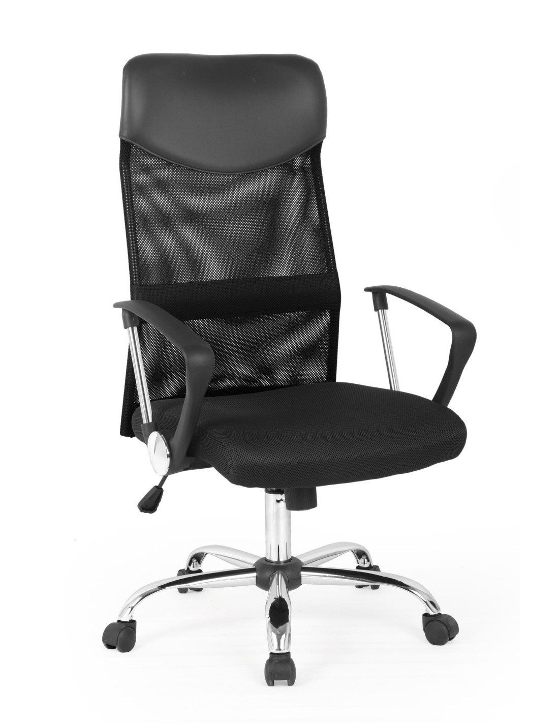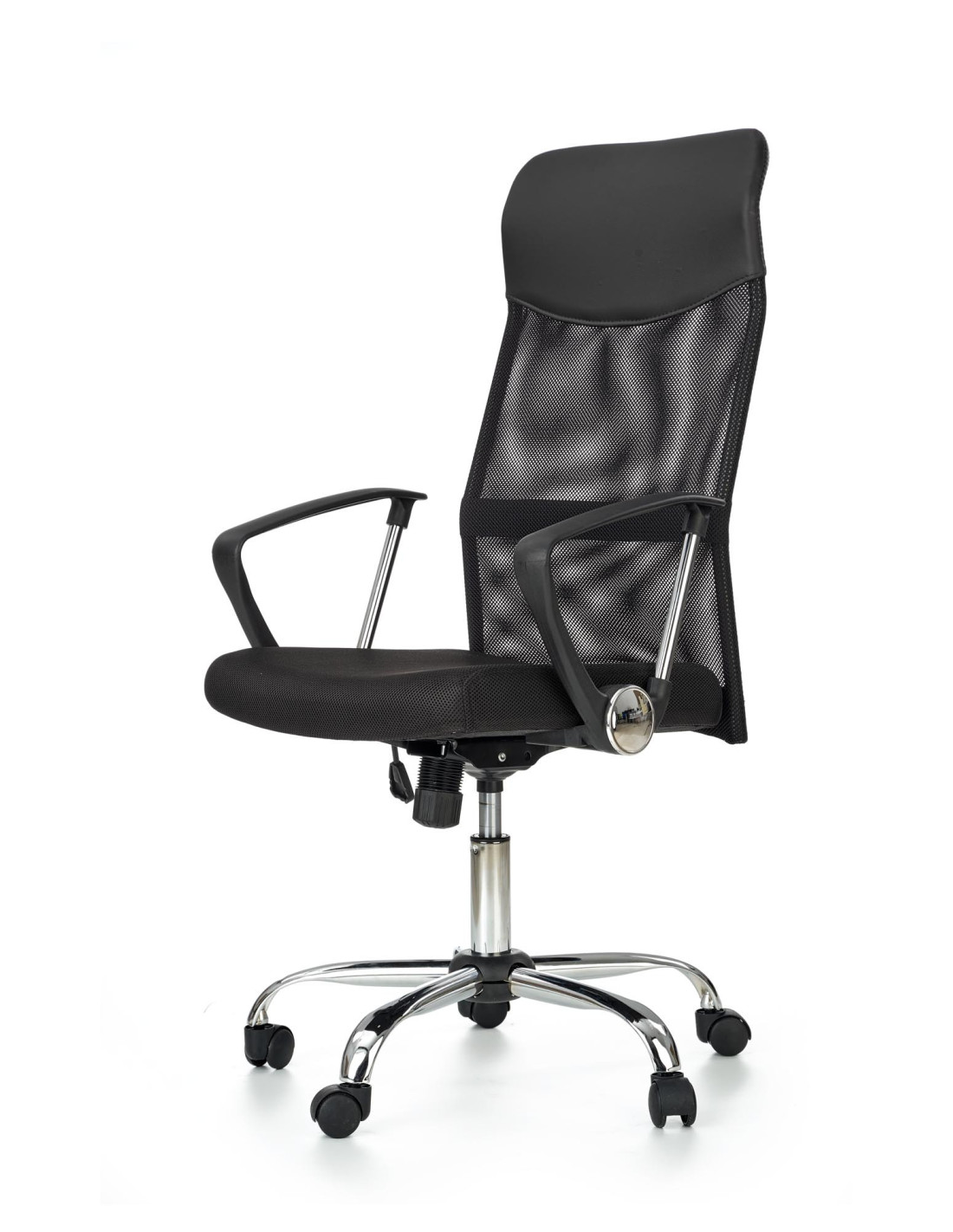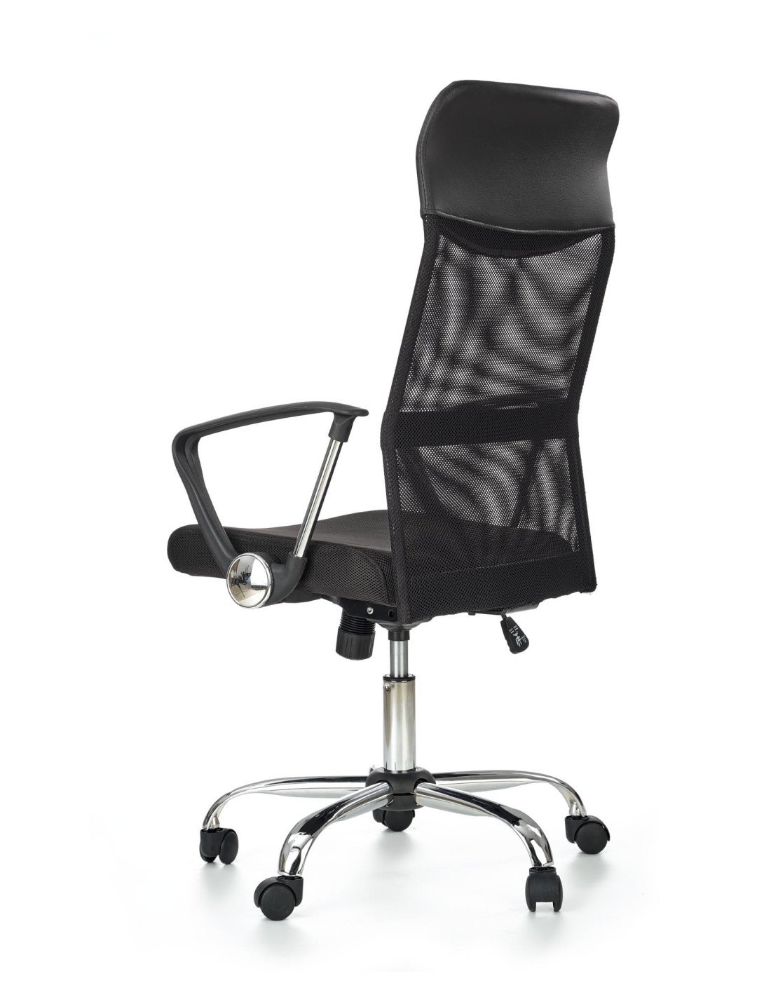 VIRE Fotel Biurowy Czarny - Eco Skóra / Siatka / Chrom - Wygodne Oparcie