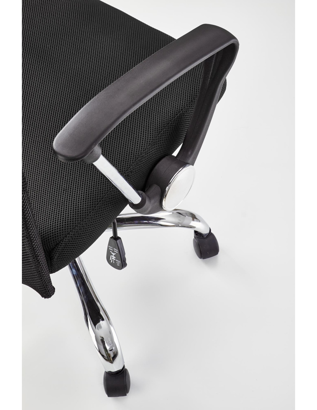- ✅ Chromowana pięcioramienna podstawa: Gwarantuje stabilność i mobilność dzięki kółkom, co ułatwia poruszanie się po biurze.