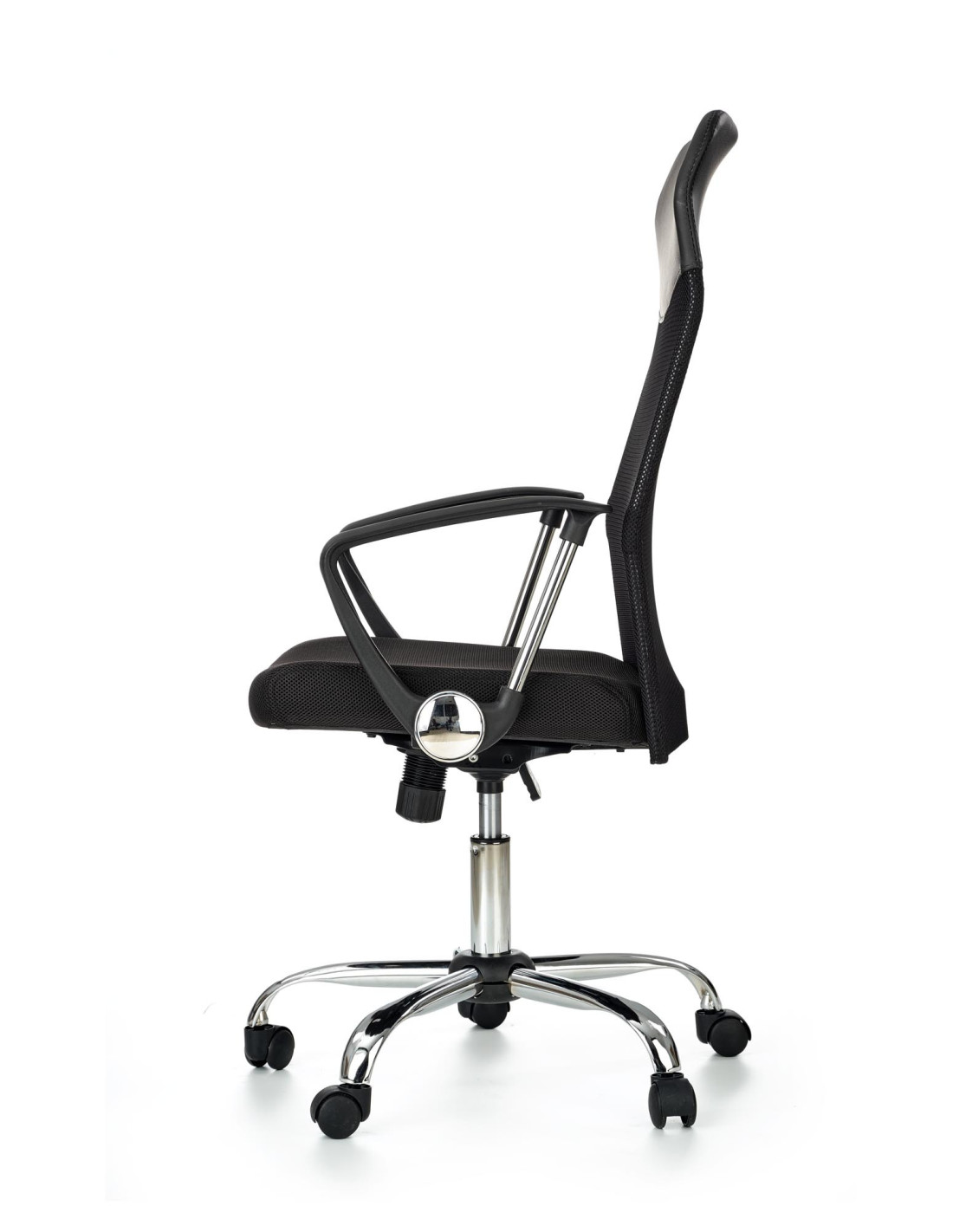 Fotel VIRE wykonany jest z tkaniny membranowej na siedzisku oraz z siatki w górnej części oparcia, a jego podstawa to stal chromowana.