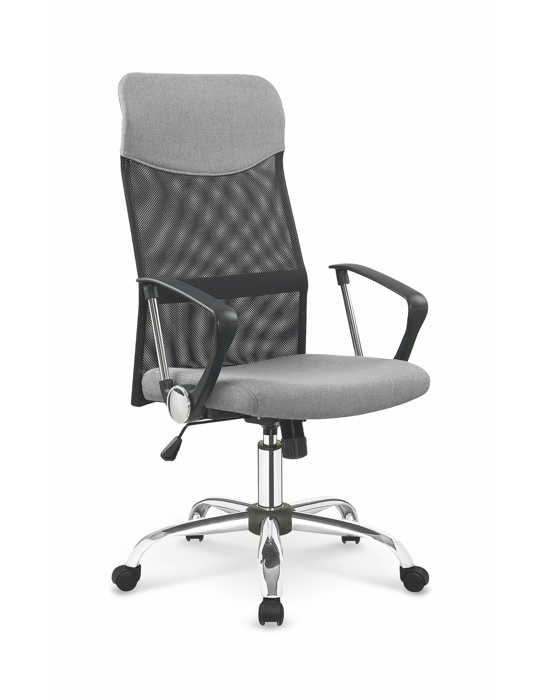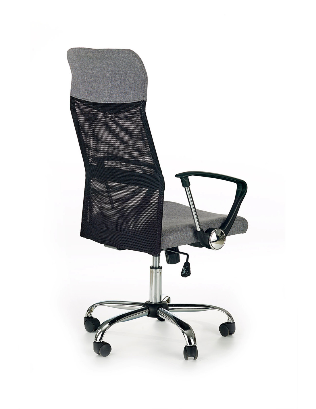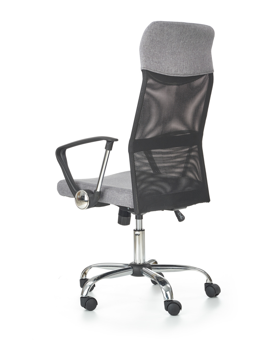 Fotel VIRE wykonany jest z tkaniny na siedzisku oraz siatki, a jego podstawa to stal chromowana.