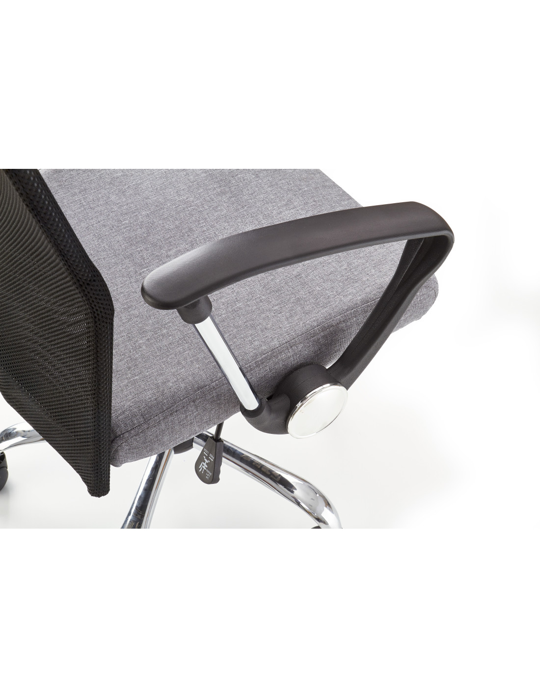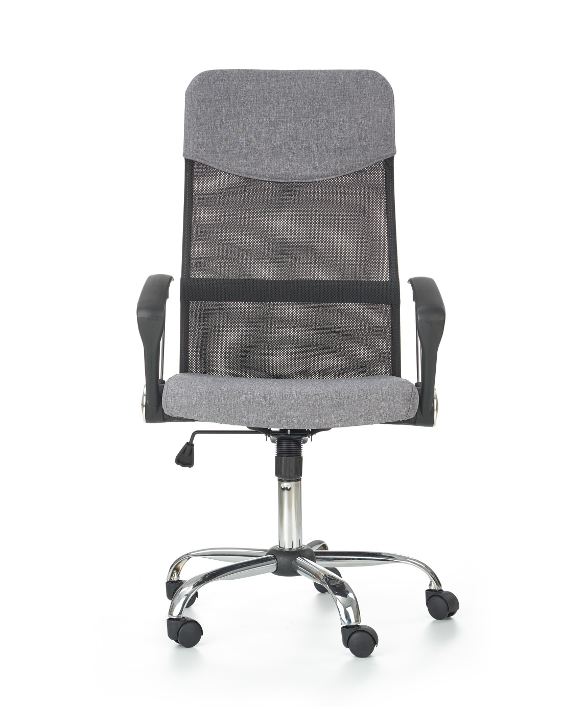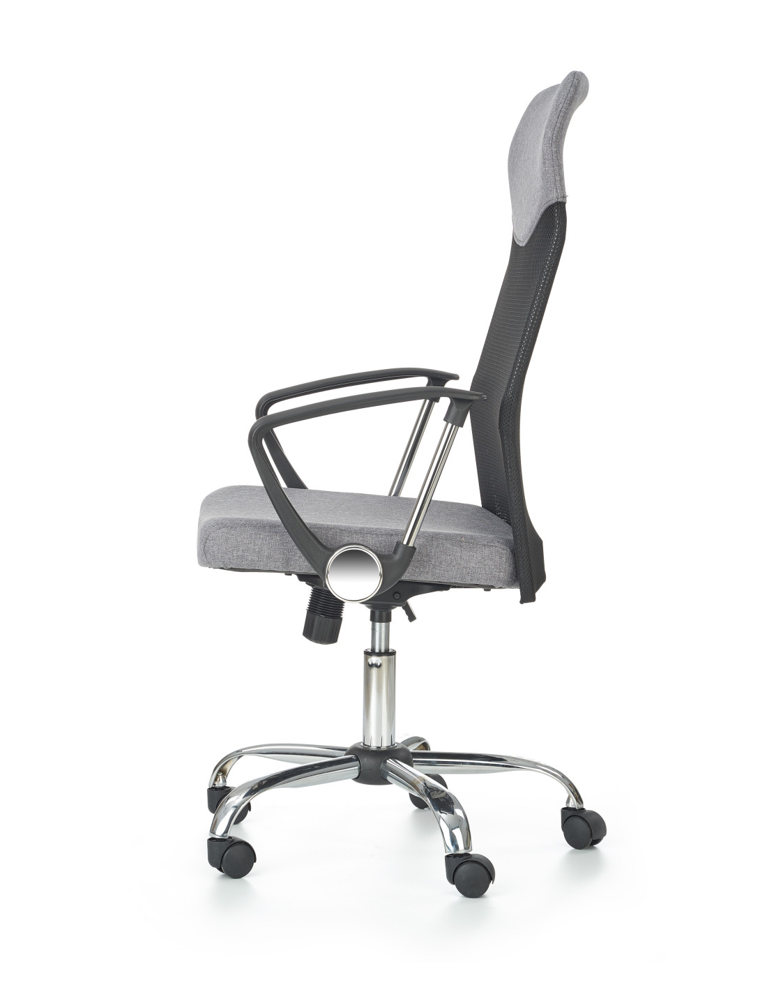 Fotel VIRE wykonany jest z tkaniny na siedzisku oraz siatki, a jego podstawa to stal chromowana.
